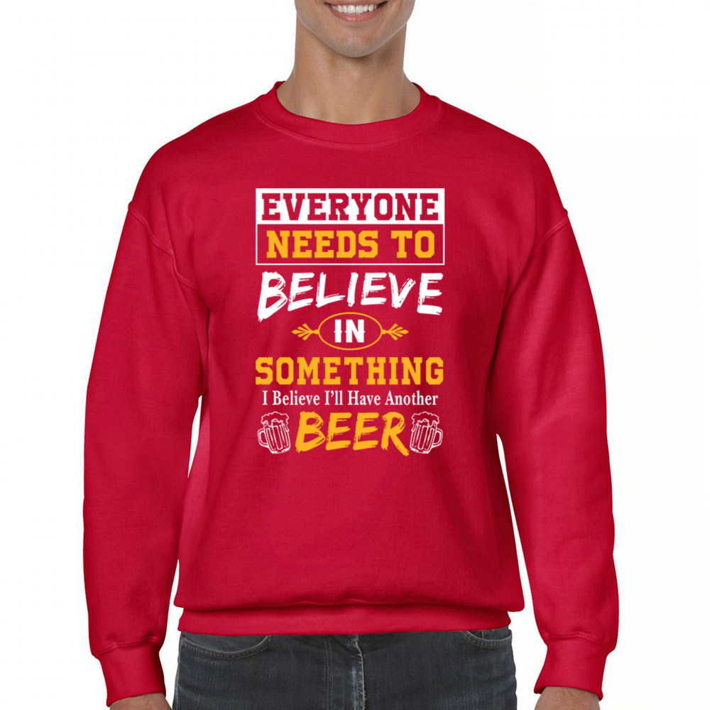 Celebrate your love for beer with the witty "Everyone Needs to Believe in Something, I Believe I'll Have Another Beer" design. Perfect for beer lovers and casual outings.