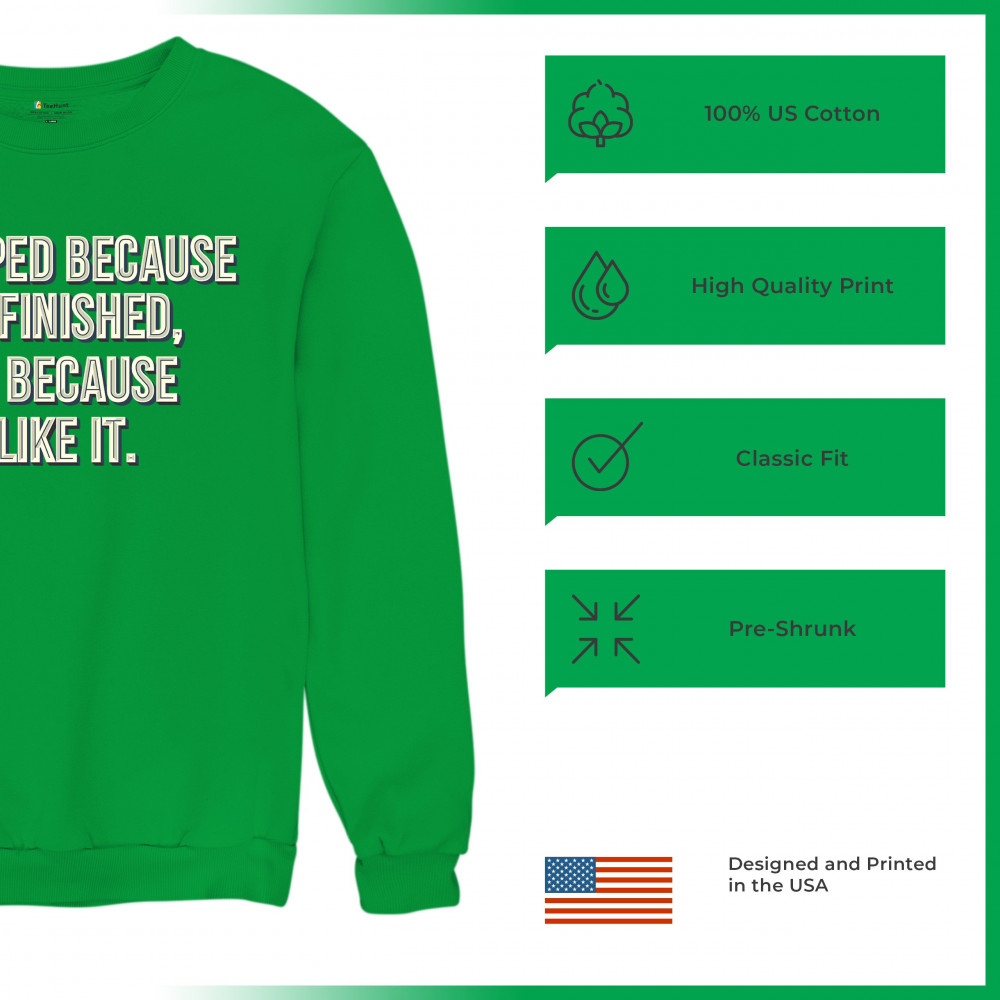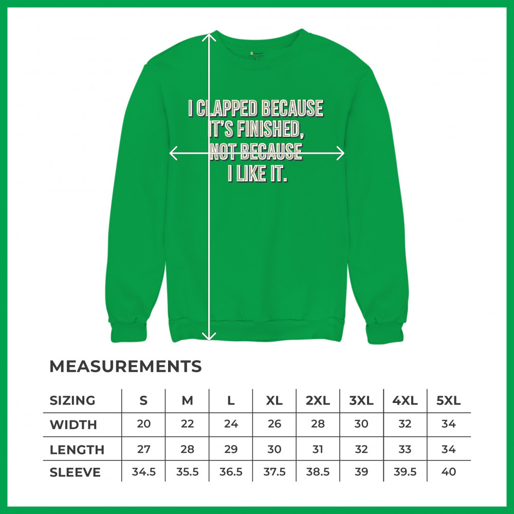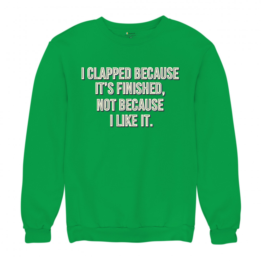 I CLAPPED BECAUSE IT'S FINISHED NOT BECAUSE I LIKE IT sweatshirt funny crewneck green