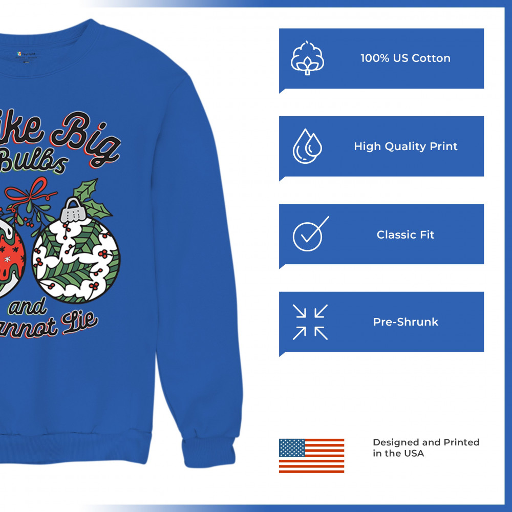 Light up the holiday season with our "I Like Big Bulbs" design, a playful and festive addition to any celebration. This unique design is perfect for cozy family gatherings, office parties, or Secret Santa exchanges, adding a humorous twist to your holiday wardrobe. Ideal for matching group outfits or gift exchanges, it captures the Christmas spirit in a fun and memorable way. From jolly gatherings to festive gift ideas, this design brings cheer to every holiday event.