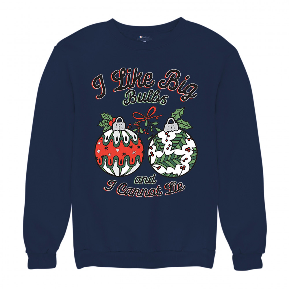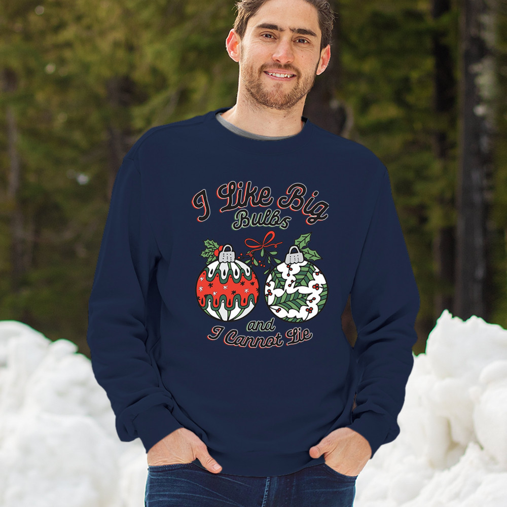 Light up the holiday season with our "I Like Big Bulbs" design, a playful and festive addition to any celebration. This unique design is perfect for cozy family gatherings, office parties, or Secret Santa exchanges, adding a humorous twist to your holiday wardrobe. Ideal for matching group outfits or gift exchanges, it captures the Christmas spirit in a fun and memorable way. From jolly gatherings to festive gift ideas, this design brings cheer to every holiday event.