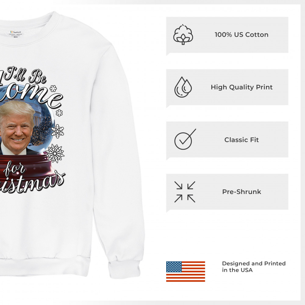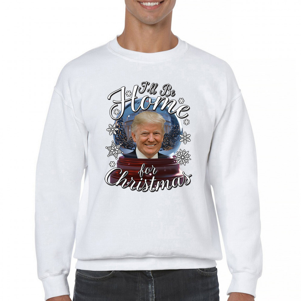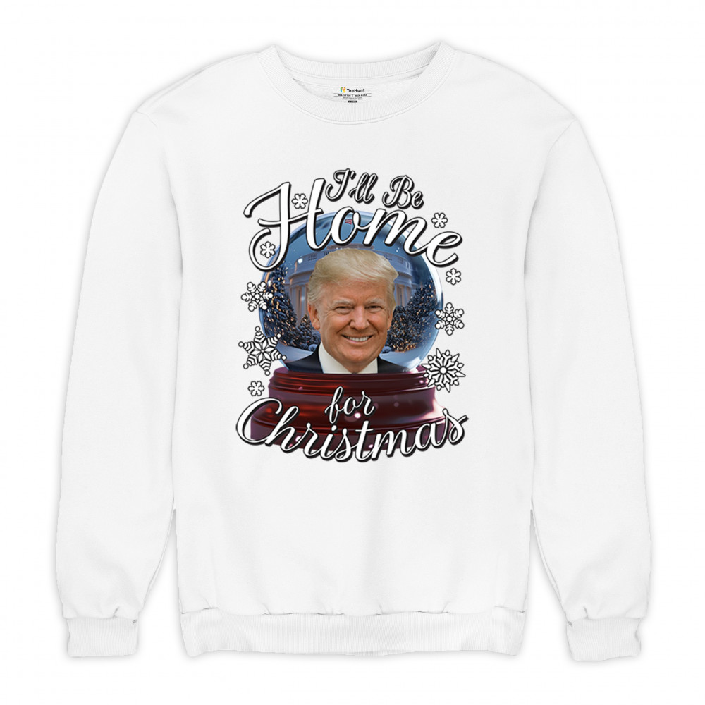 Get ready for the ultimate blend of holiday cheer and American pride with this "I'll Be Home for Christmas" design featuring Donald J. Trump in a festive snow globe. Perfect for gifts, holiday parties, or cozy mornings, this standout piece celebrates the season with style. Whether paired with matching pajamas or a cozy sweatshirt, it's a perfect way to add patriotic charm to your Feliz Navidad celebrations or office gatherings.