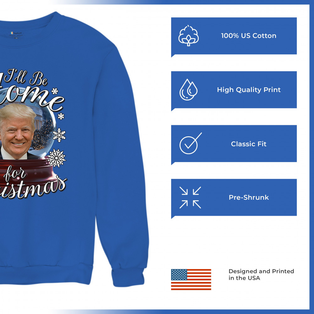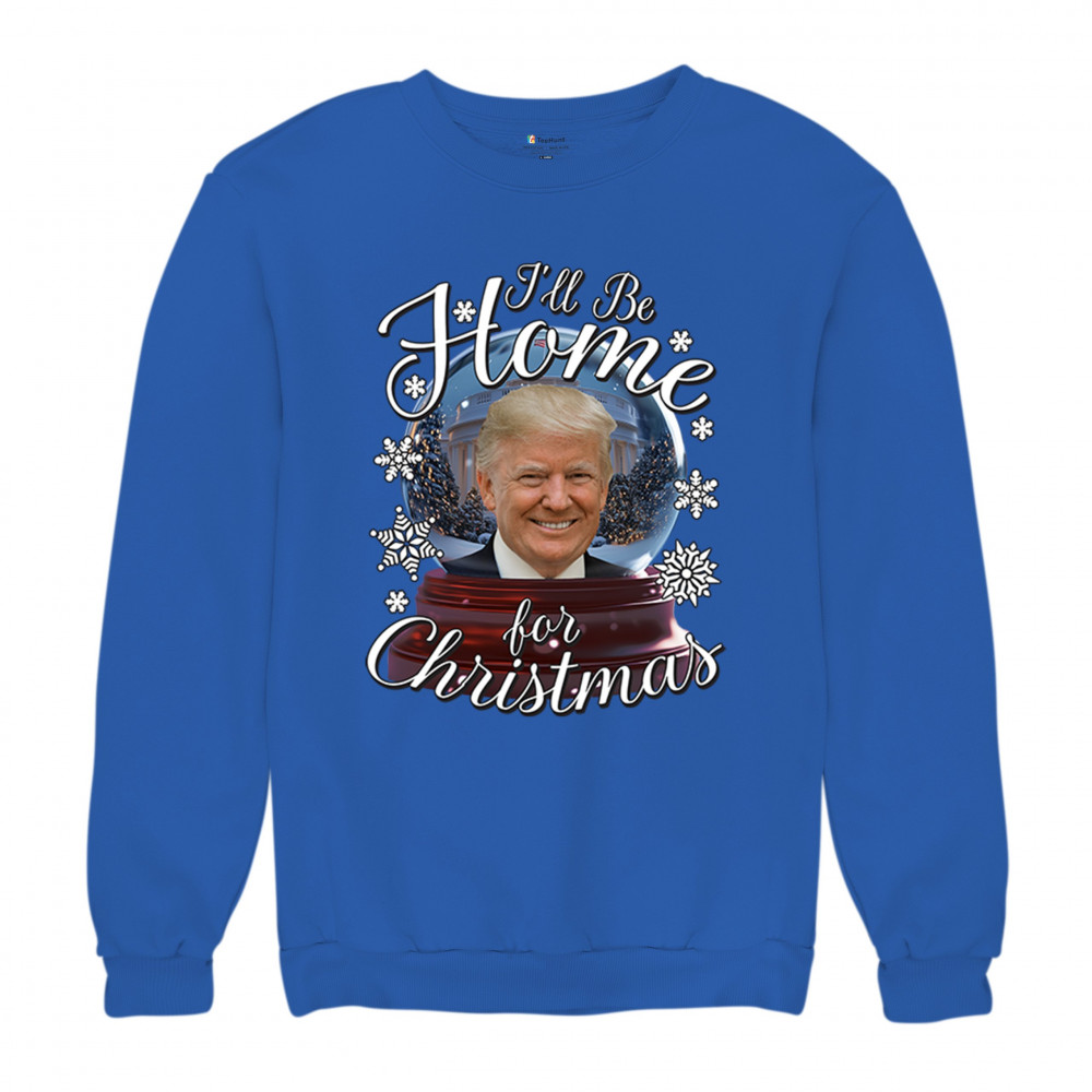 Get ready for the ultimate blend of holiday cheer and American pride with this "I'll Be Home for Christmas" design featuring Donald J. Trump in a festive snow globe. Perfect for gifts, holiday parties, or cozy mornings, this standout piece celebrates the season with style. Whether paired with matching pajamas or a cozy sweatshirt, it's a perfect way to add patriotic charm to your Feliz Navidad celebrations or office gatherings.