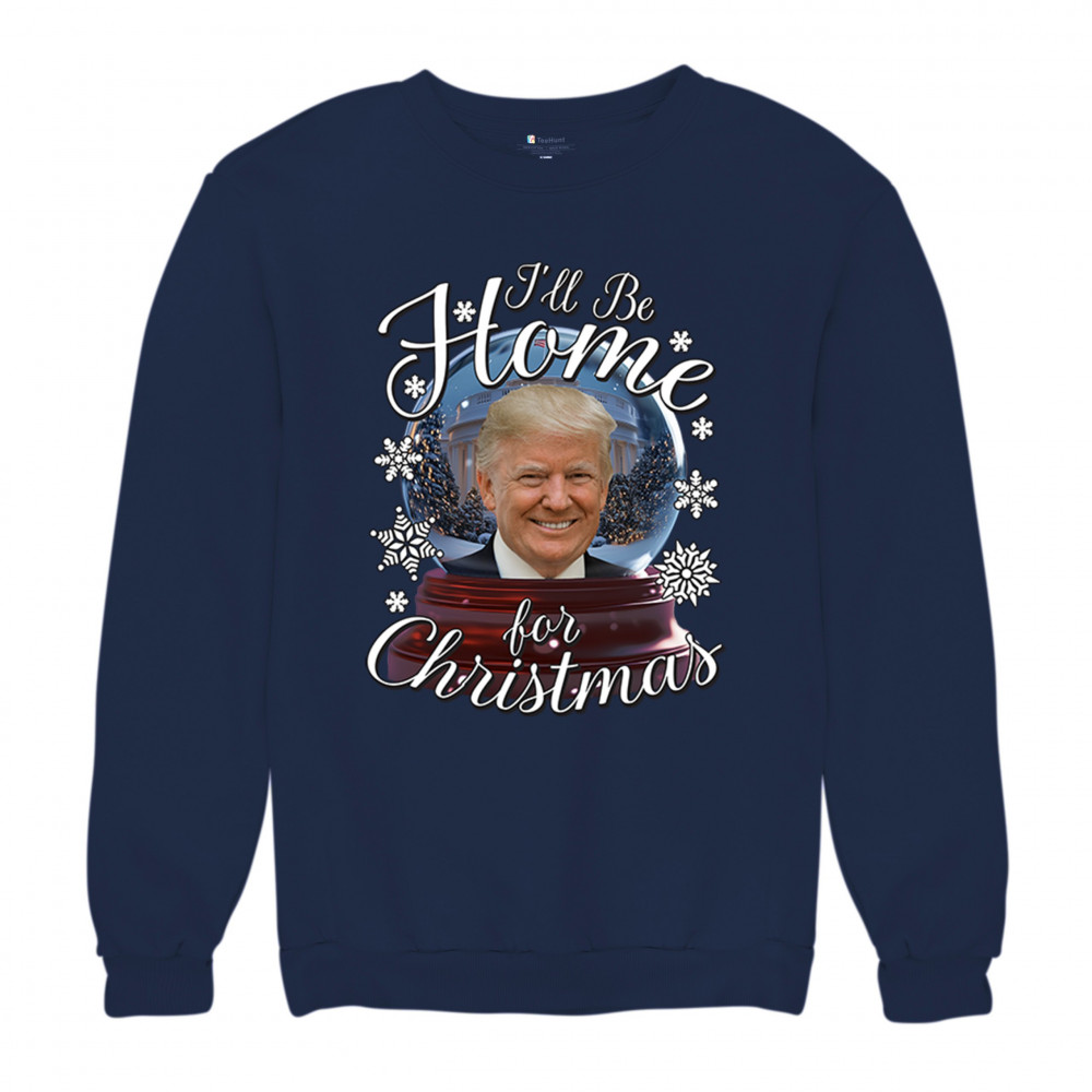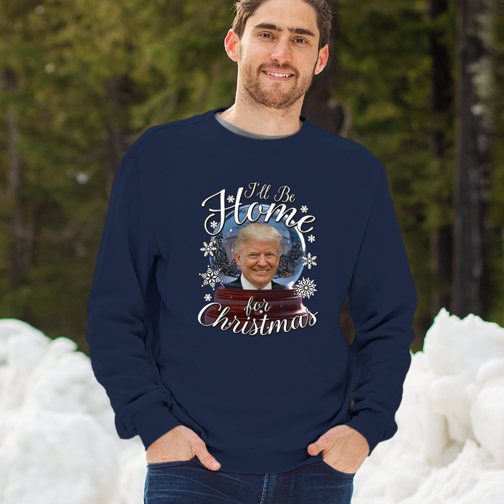 Get ready for the ultimate blend of holiday cheer and American pride with this "I'll Be Home for Christmas" design featuring Donald J. Trump in a festive snow globe. Perfect for gifts, holiday parties, or cozy mornings, this standout piece celebrates the season with style. Whether paired with matching pajamas or a cozy sweatshirt, it's a perfect way to add patriotic charm to your Feliz Navidad celebrations or office gatherings.