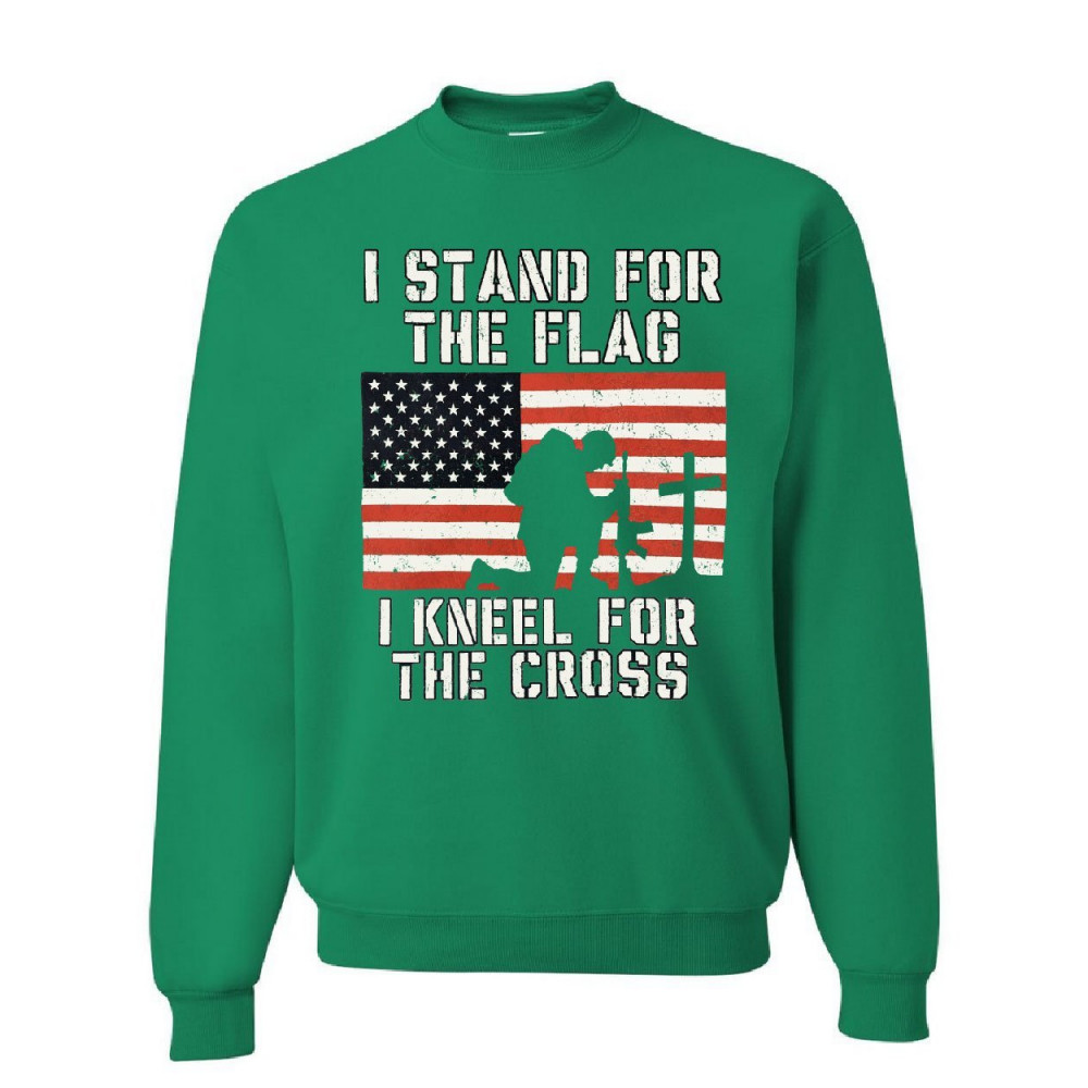 I STAND FOR THE FLAG I KNEEL FOR THE CROSS sweatshirt patriotic military sweater green