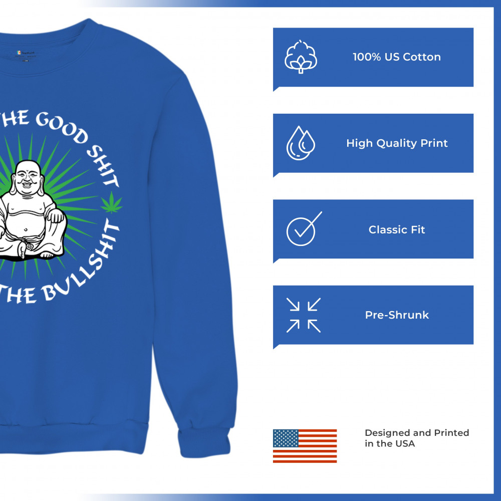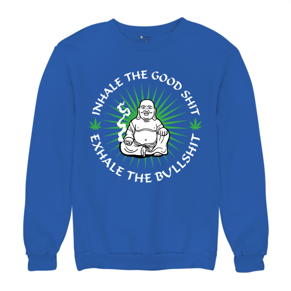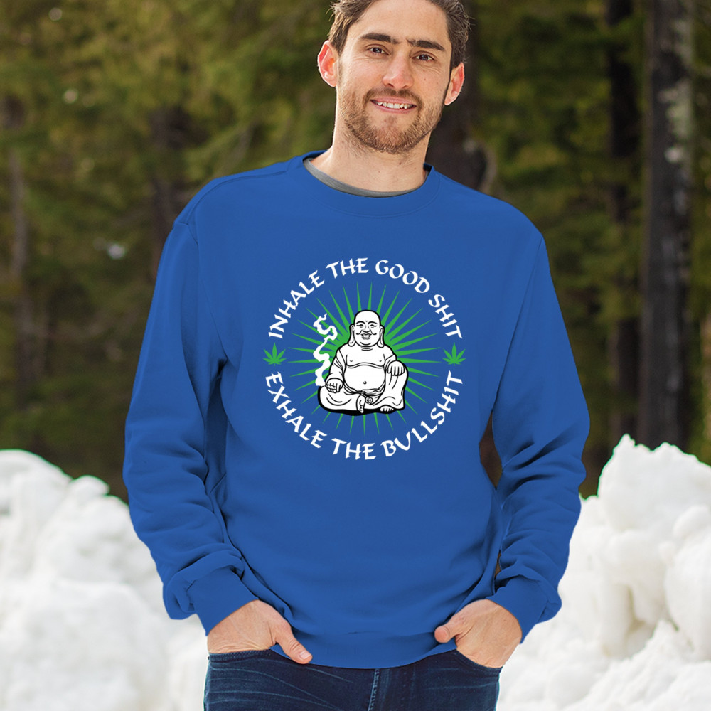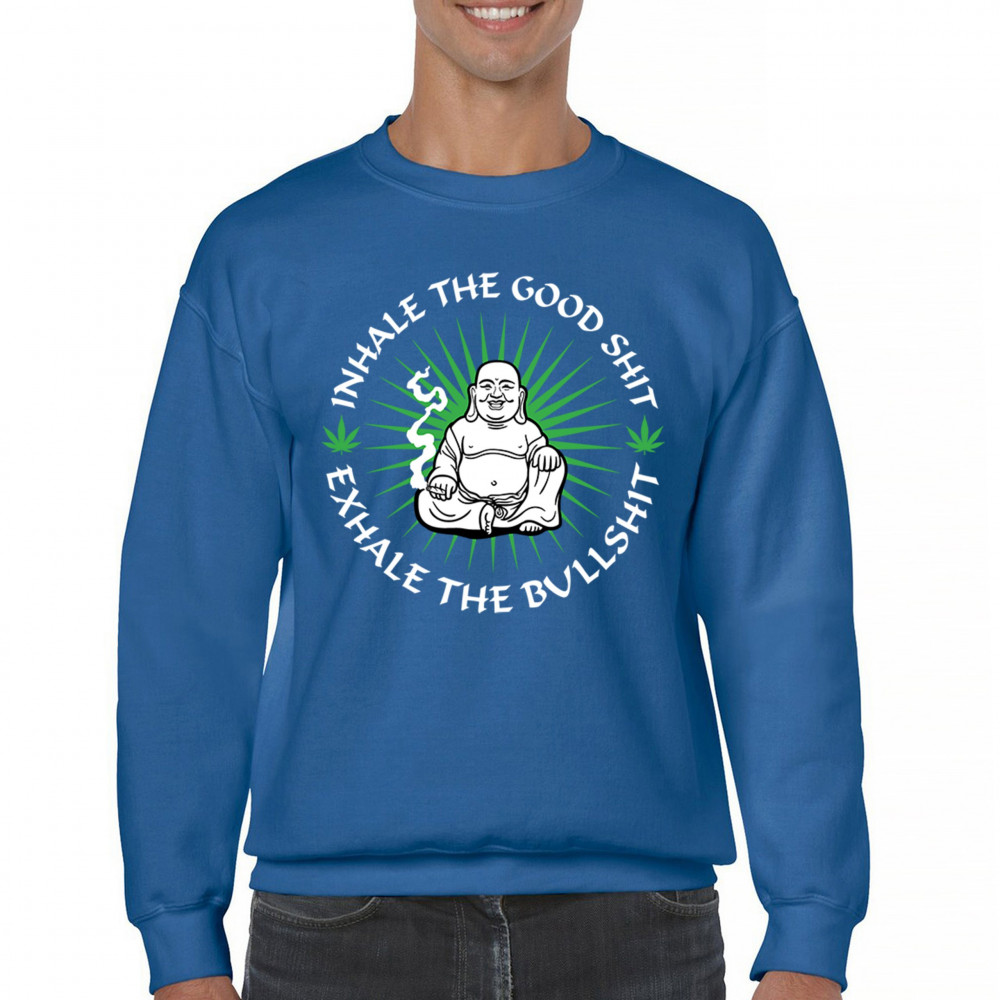 This hilarious and zen-inspired design features a happy Buddha with a joint, surrounded by cannabis leaves. “Inhale the Good Shit, Exhale the Bullshit†delivers chill stoner wisdom with a wink. Ideal for mindful marijuana lovers, 420 fans, or spiritual rebels with a sense of humor and a love for weed.