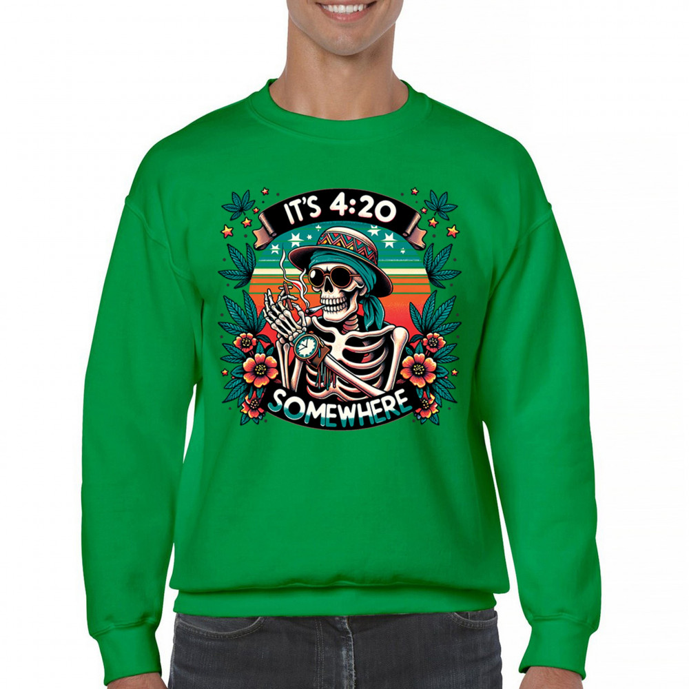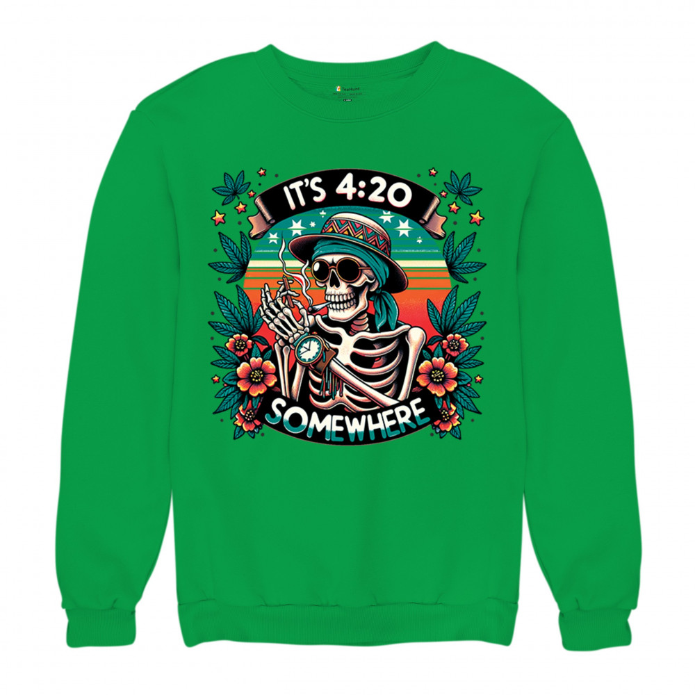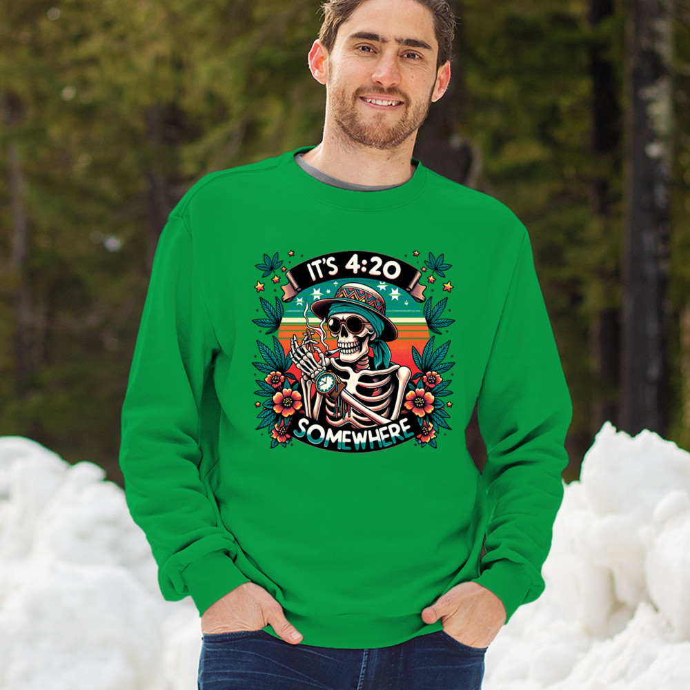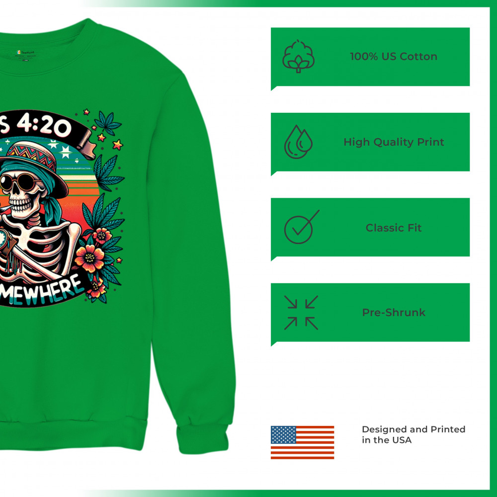 Get lifted with this “It’s 4:20 Somewhere†design featuring a joint-smoking skeleton, tropical sunset, and Deadhead stoner vibes. With bold trippy colors and beachy weed art, this tee is perfect for April 20 parties, summer festivals, and cannabis lovers living the high life.
