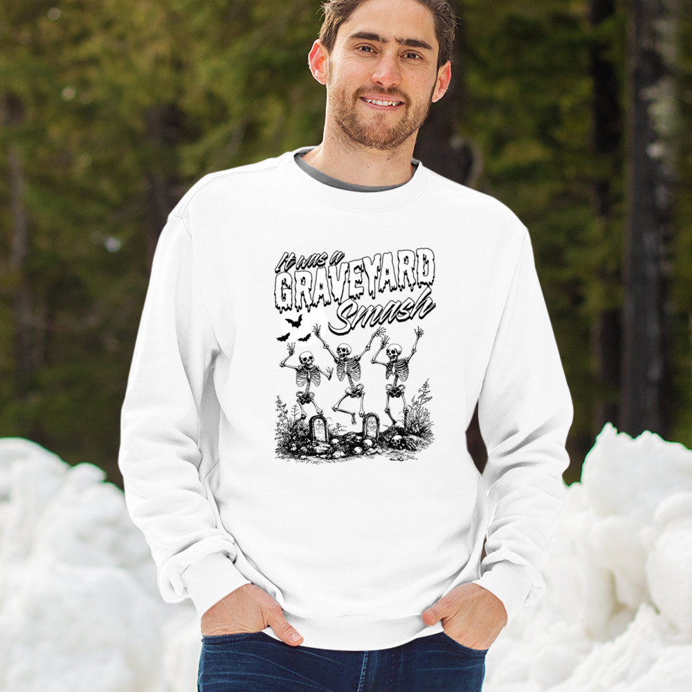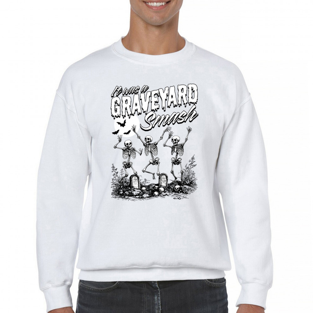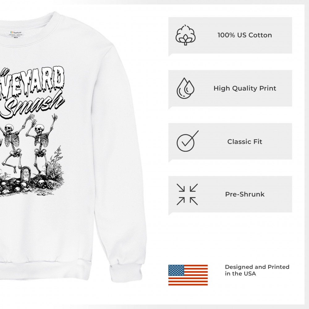 Add a touch of spooky fun to your Halloween attire with this "Graveyard Smash" design, showcasing skeletons dancing under the moonlight in a graveyard. Ideal for anyone who loves Halloween, this graphic tee is perfect for parties, haunted houses, or casual trick-or-treating. Made from high-quality materials, it offers both comfort and style, ensuring you look great while embracing the festive spirit. Available in multiple sizes, this shirt is a must-have for your Halloween collection.