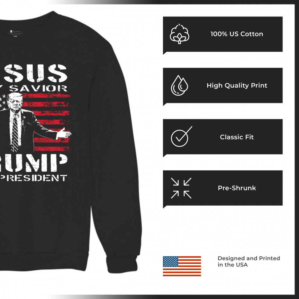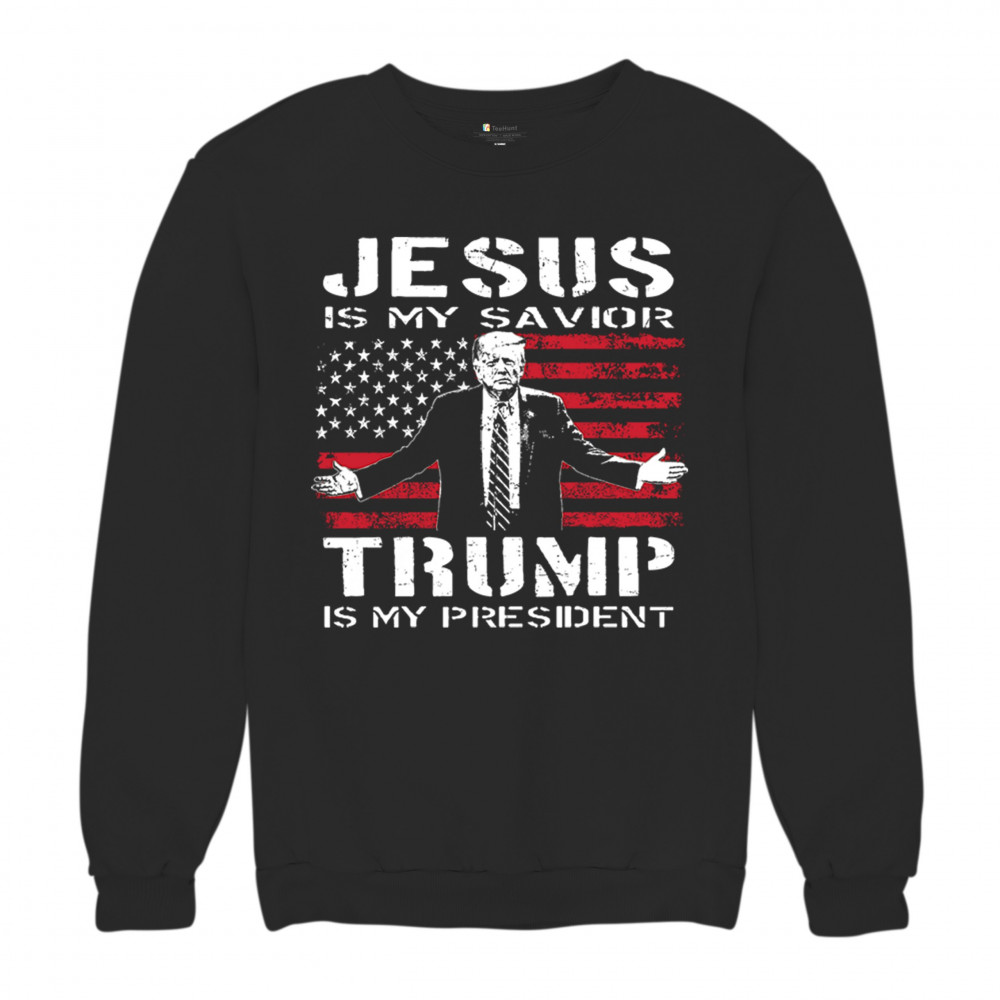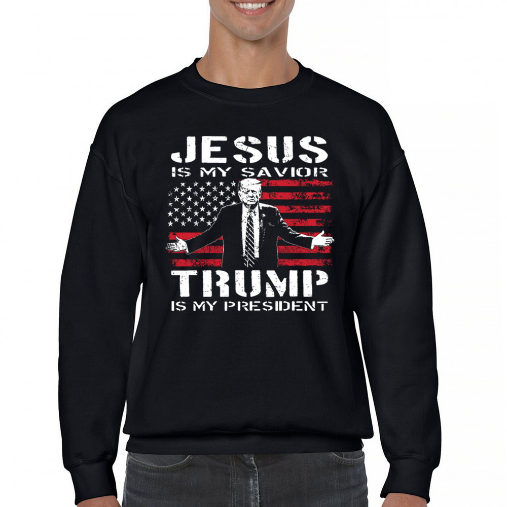 Express your unwavering faith and patriotism with the "Jesus is My Savior, Trump is My President" design. Perfect for conservatives, Republicans, and Trump supporters, this bold graphic combines spiritual devotion with a commitment to America First values. Celebrate the 47th President and the fight for freedom with this standout piece at rallies, events, or as a unique gift.