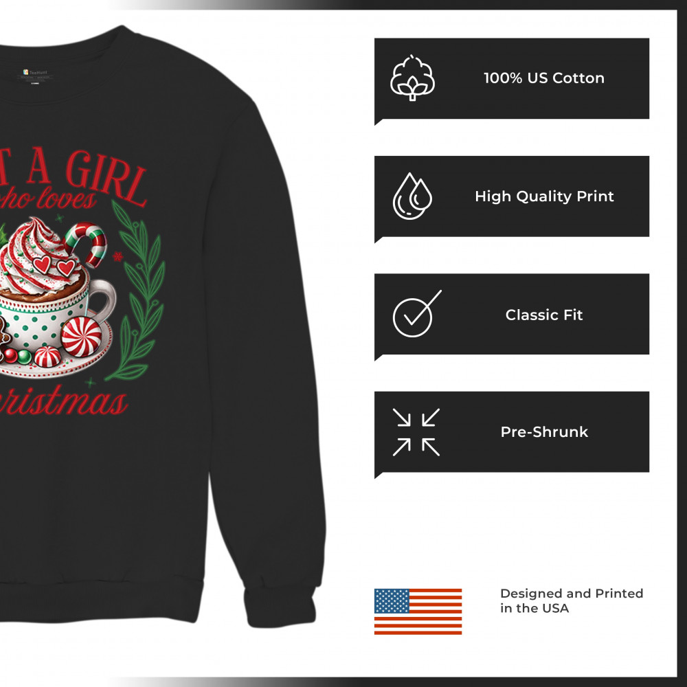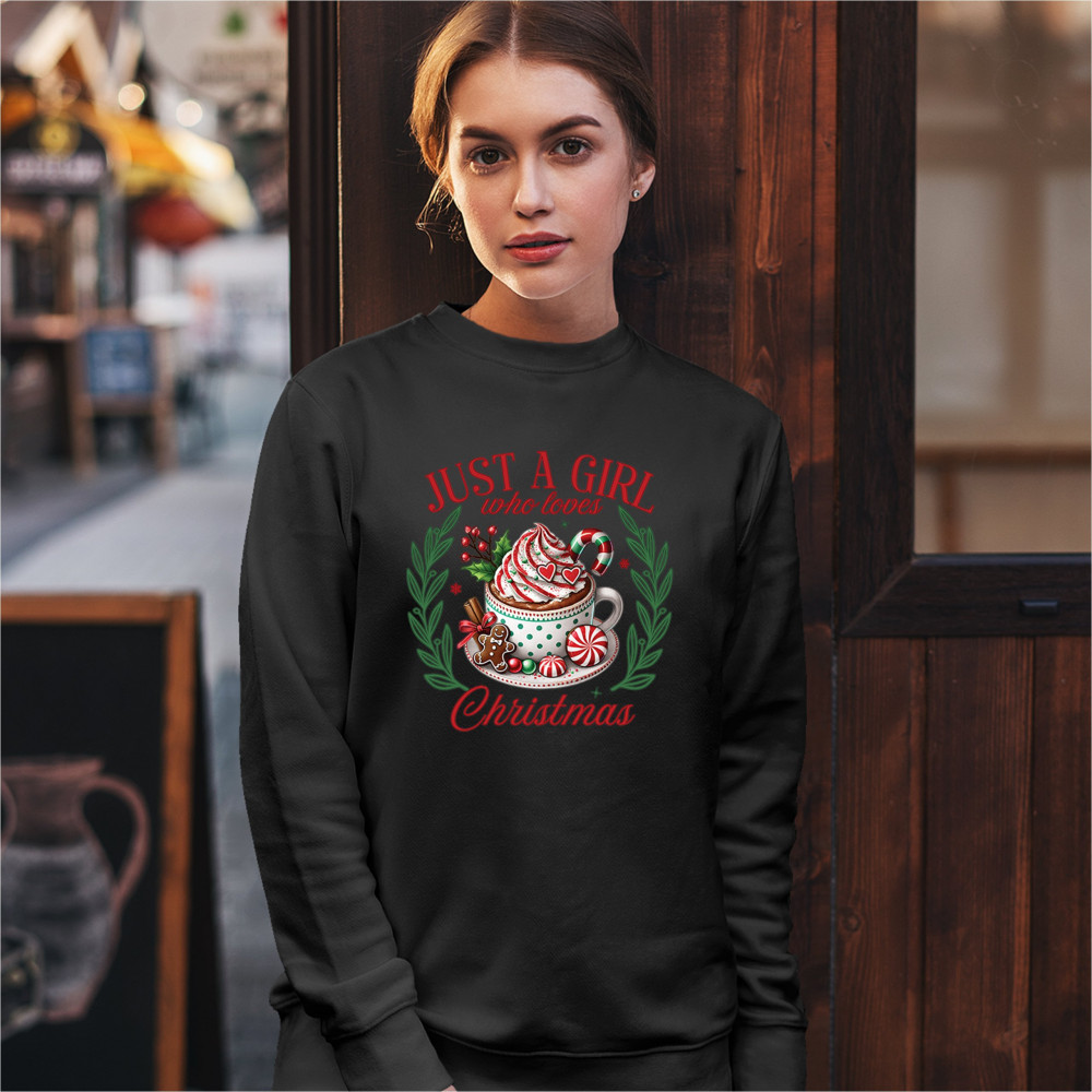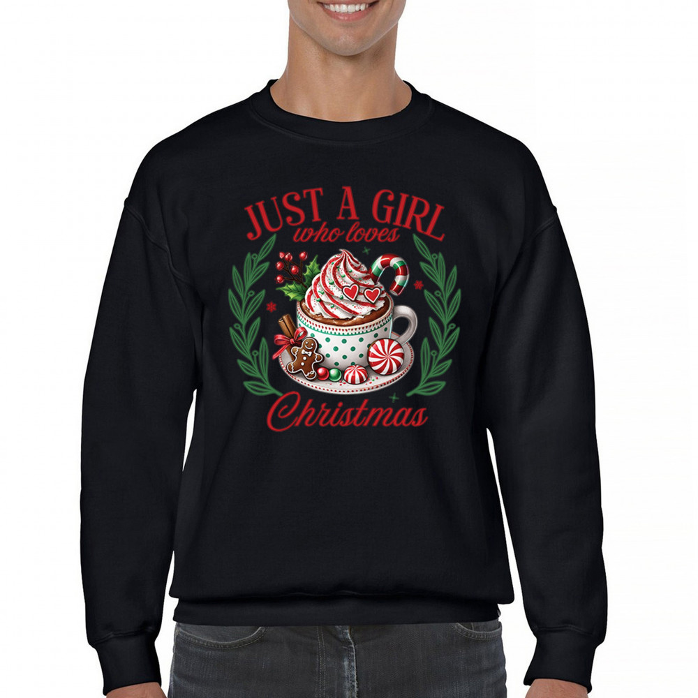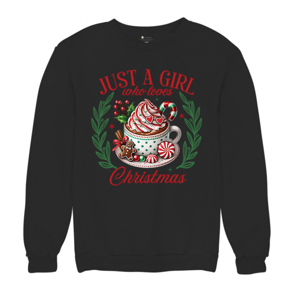 JUST A GIRL WHO LOVES CHRISTMAS crewneck sweatshirt xmas cookie baking jolly black