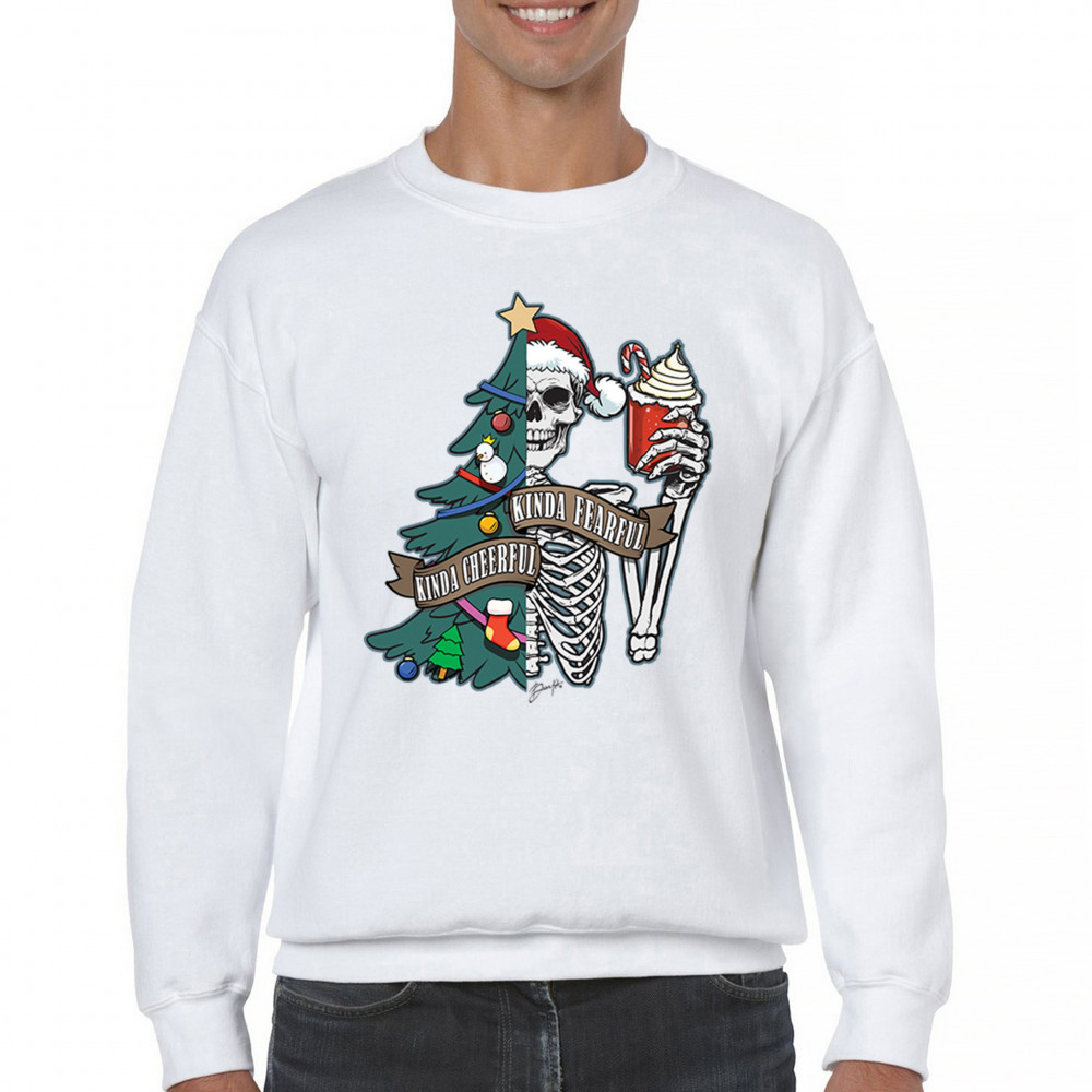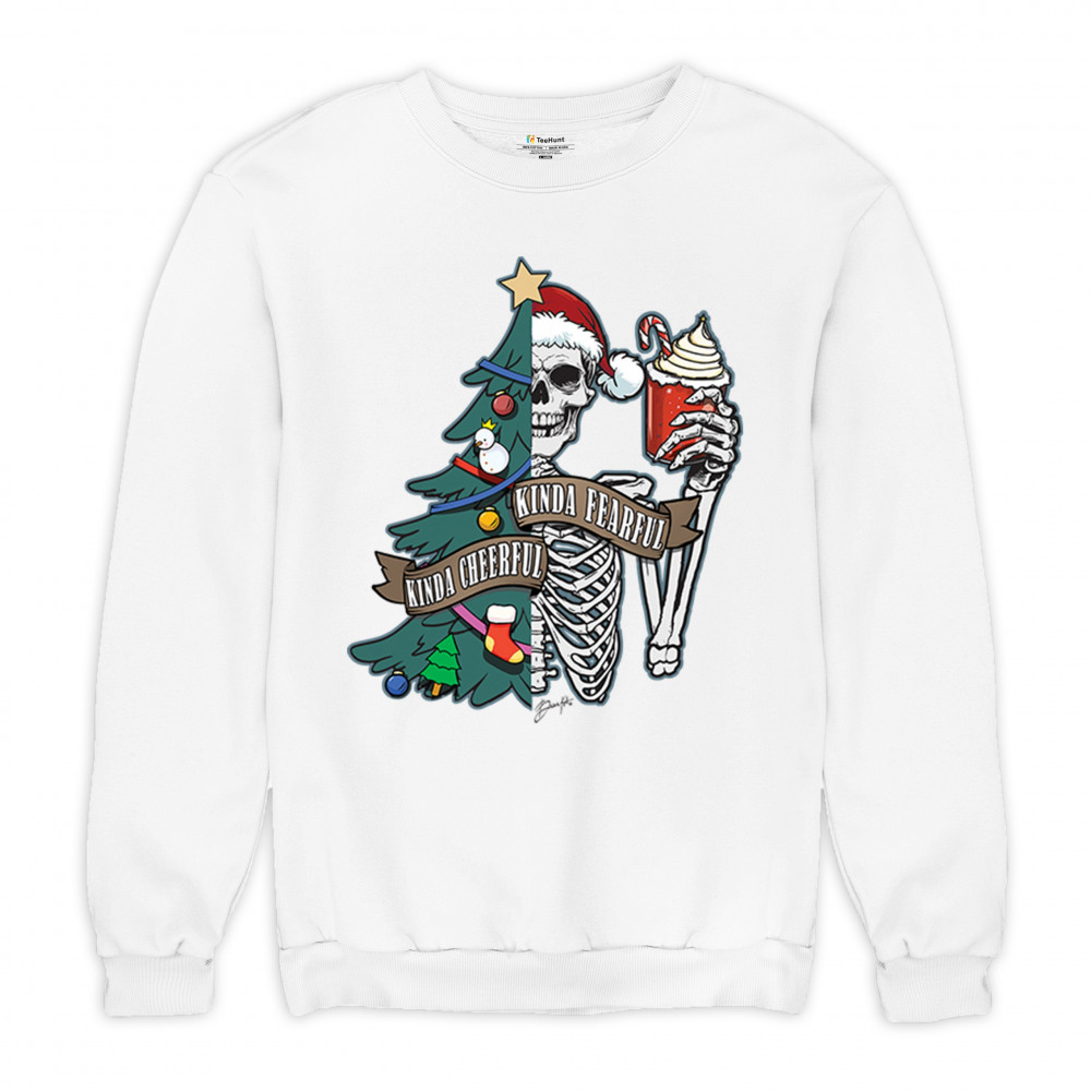 This creative Kinda Cheerful, Kinda Fearful design is a perfect blend of festive and spooky fun! Featuring a half-decorated Christmas tree and skeleton, it’s ideal for those who love combining Halloween and Christmas vibes. Great for secret Santa gifts, matching holiday pajamas, or rocking at your next ugly sweater contest. Perfect for office parties, family mornings, or simply adding some unique charm to your Feliz Navidad celebrations.