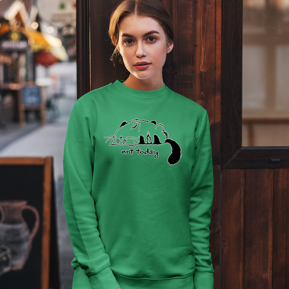 LAZY KITTY NOT TODAY sweatshirt kitten cat lovers funny crewneck green