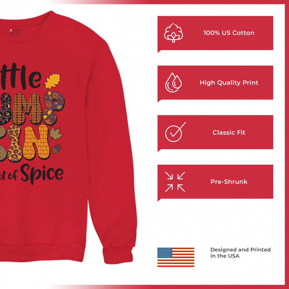 Spice up your fall wardrobe with this 'Little Pumpkin with a Lot of Spice' design, perfect for adding a festive touch to your seasonal outings. Whether you're visiting the pumpkin patch or enjoying a cozy autumn night, this playful design is a fun and vibrant way to embrace the fall spirit. Ideal for Thanksgiving, Halloween, and beyond!