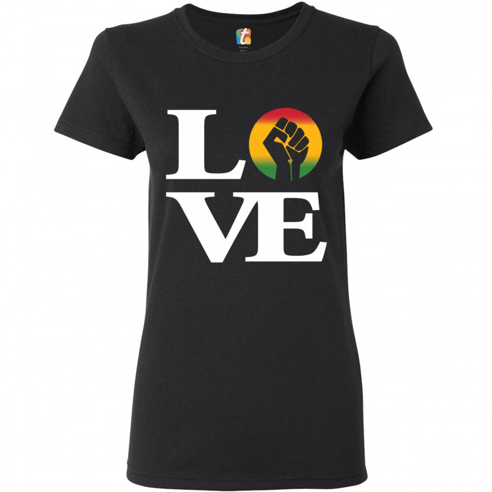 LOVE POWER FIST t-shirt black lives matter african american women's tee black