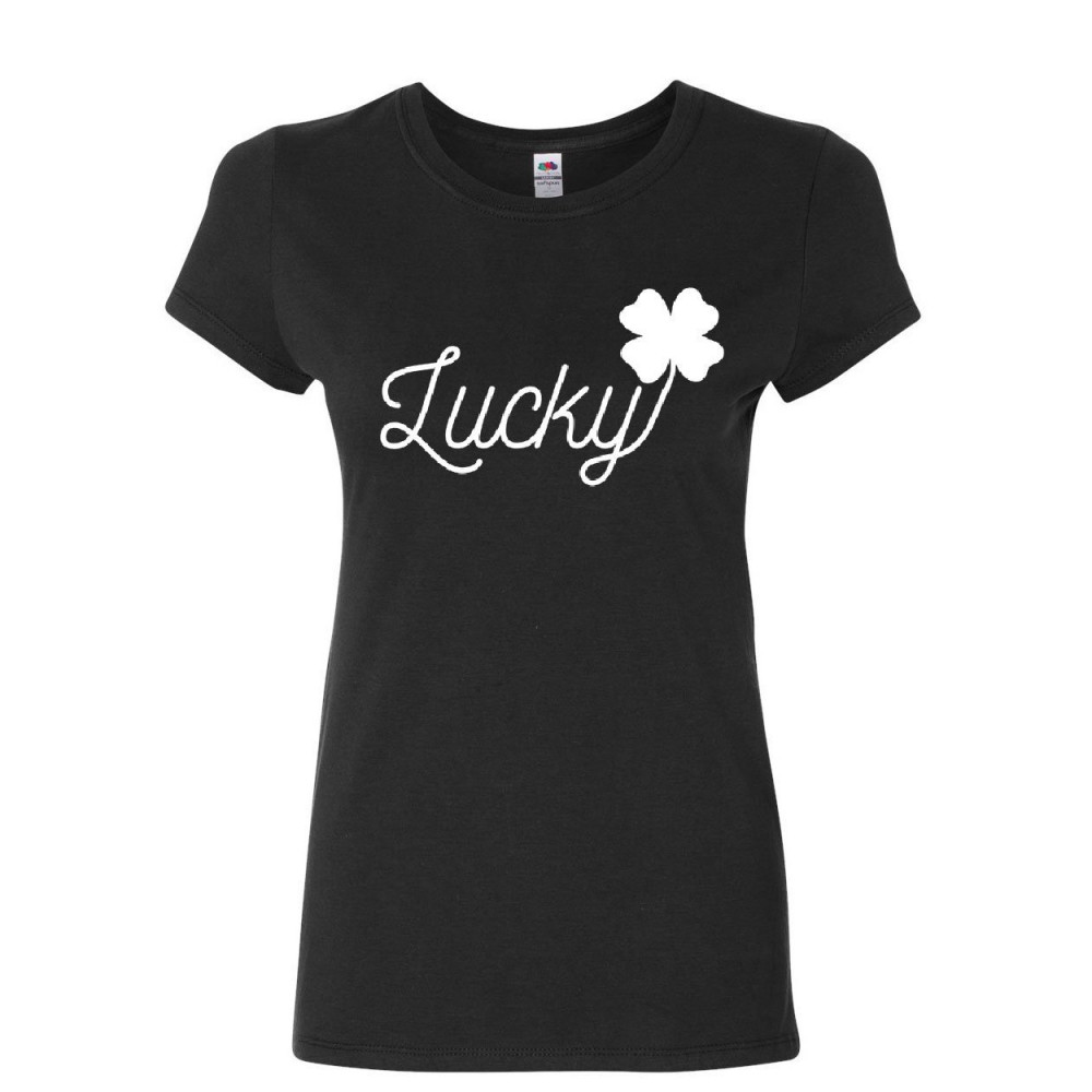 LUCKY SHAMROCK lucky irish women's t-shirt st. patrick's day shamrock pub beer drinking shirt black