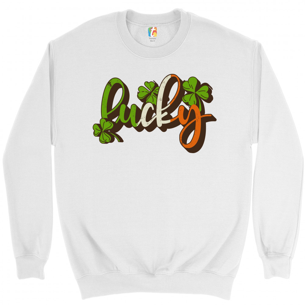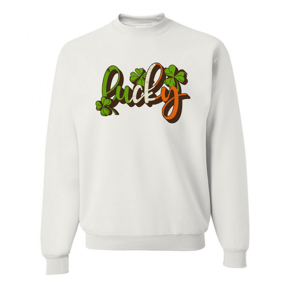 LUCKY sweatshirt irish st. patrick's day leprechaun elves shenanigans crewneck white