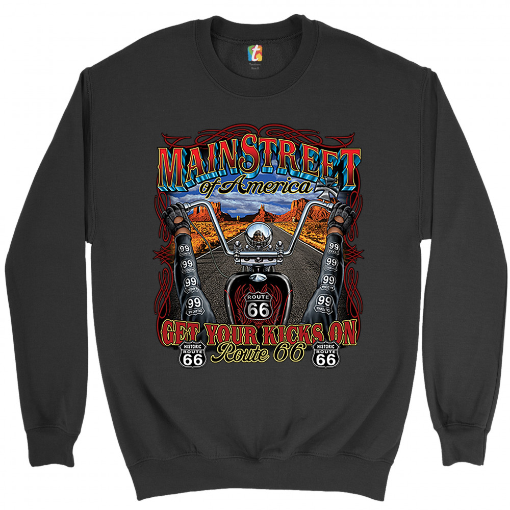 MAIN STREET OF AMERICA sweatshirt get your kicks on route 66 biker crewneck black