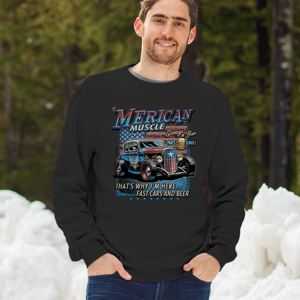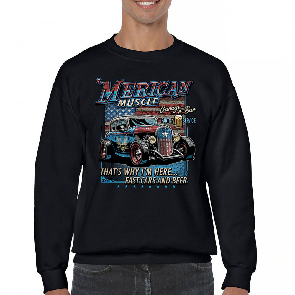 Drive into retro style with 'Merican Muscle, celebrating classic cars and the spirit of American auto excellence.