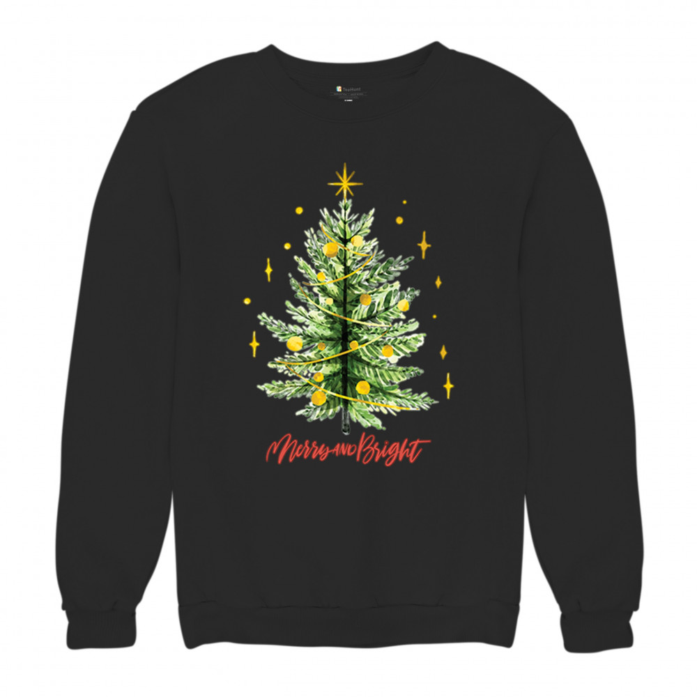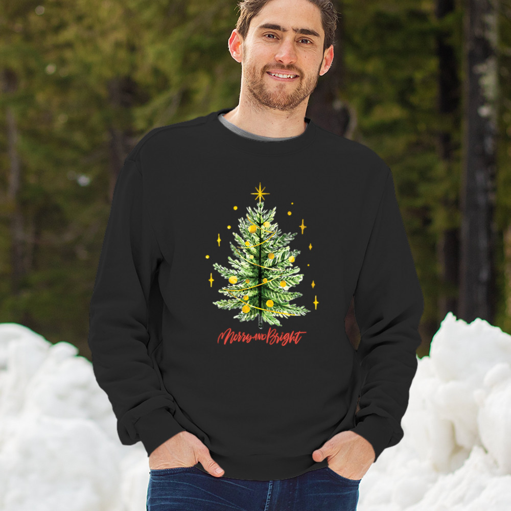 MERRY AND BRIGHT sweatshirt christmas tree holiday spirit jolly cozy crewneck black