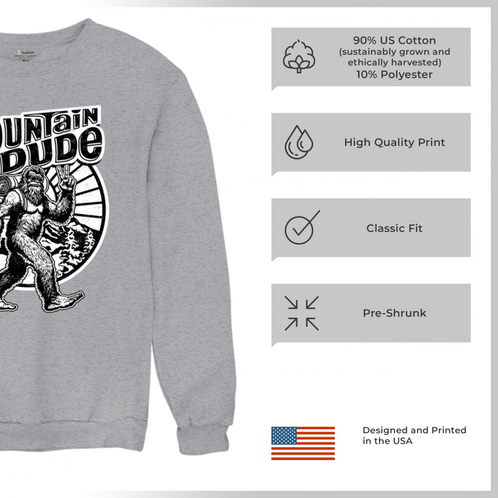Celebrate outdoor adventures with the "Mountain Dude" design, featuring Sasquatch and mountain scenery. Perfect for hikers, campers, and Bigfoot fans.