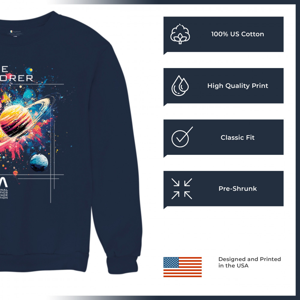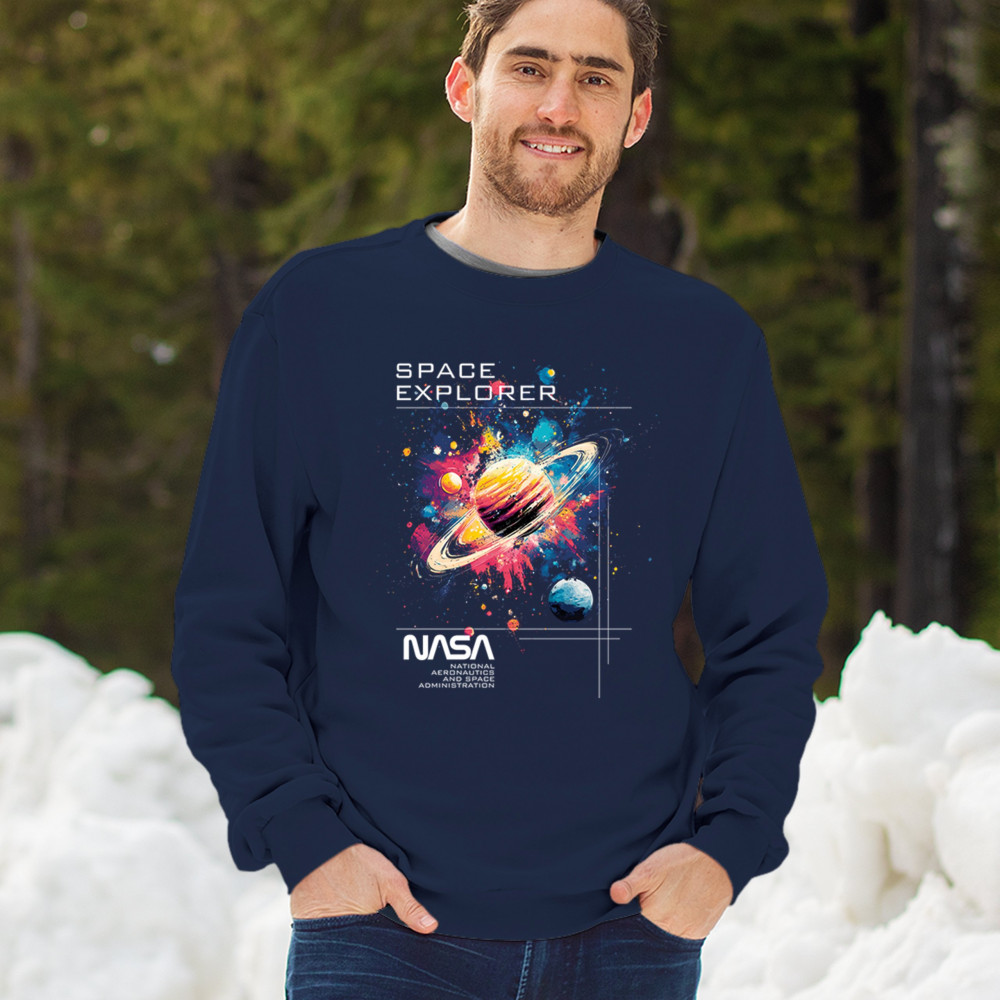 Bold and inspiring, this NASA Space Explorer design features Saturn in a cosmic paint splash with official branding. Ideal for fans of the Apollo program, moon landings, rocket launch history, and vintage NASA aesthetics. A great fit for space travel lovers, cosmic dreamers, and proud supporters of American exploration.