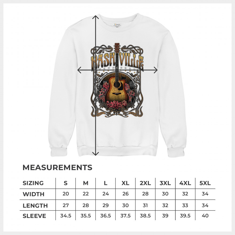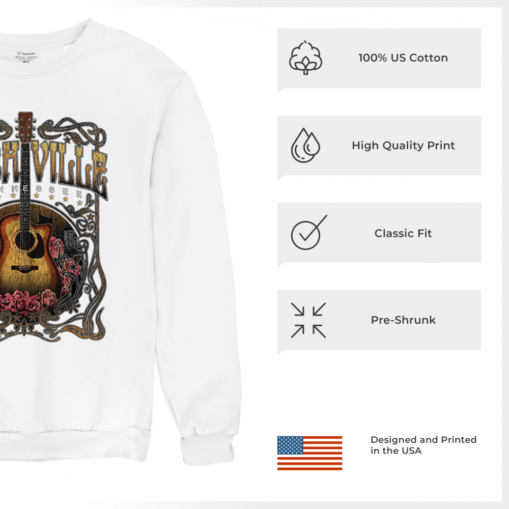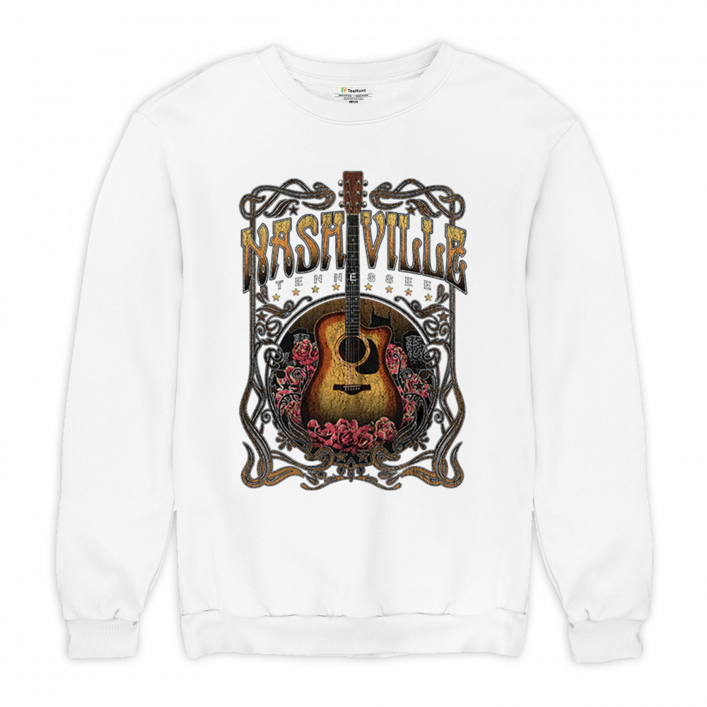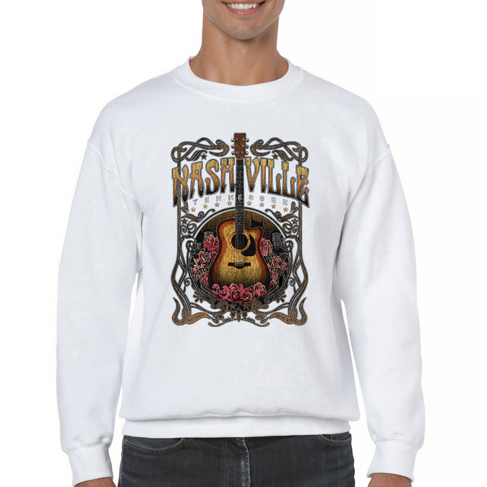 NASHVILLE TENNESSEE sweatshirt vintage guitar and roses country music crewneck white