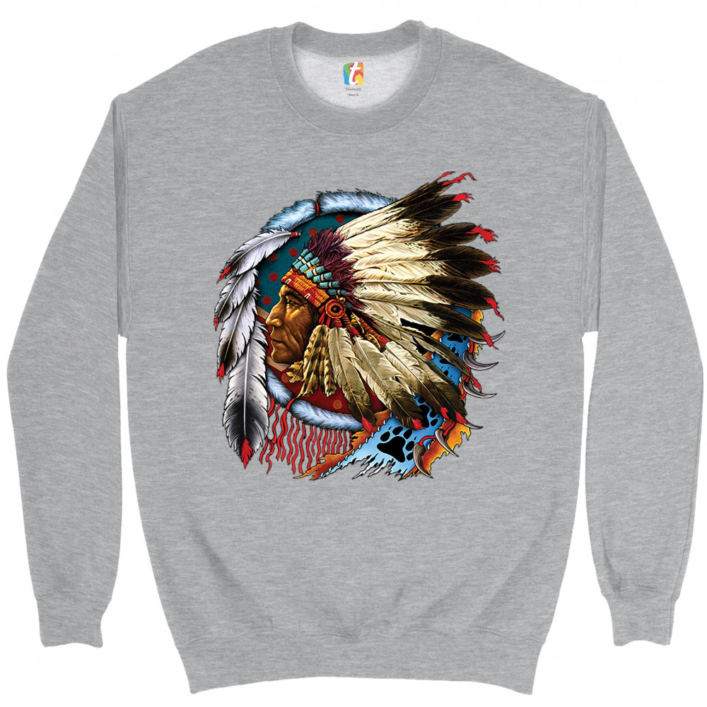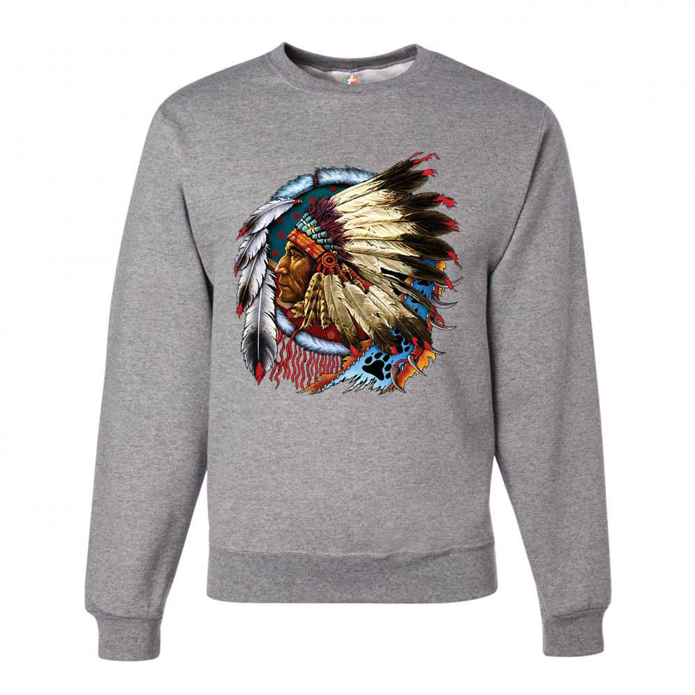 NATIVE AMERICAN CHIEF sweatshirt war bonnet dreamcatcher indigenous crewneck gray