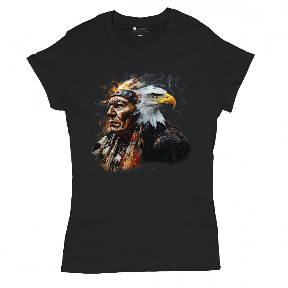 Bold tribal totem design with Native chief, eagle, lightning, and fire. A fierce blend of spirit, power, and cultural pride in one image.