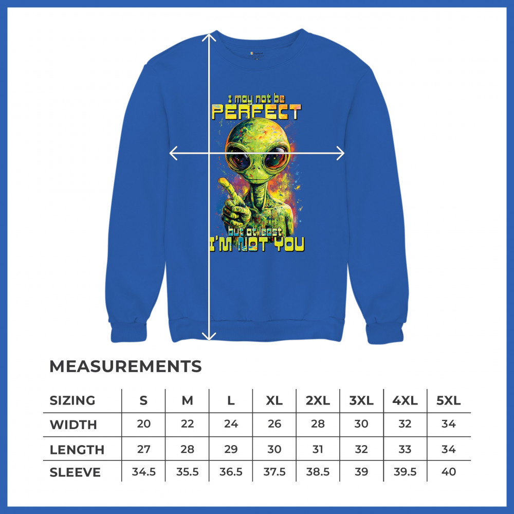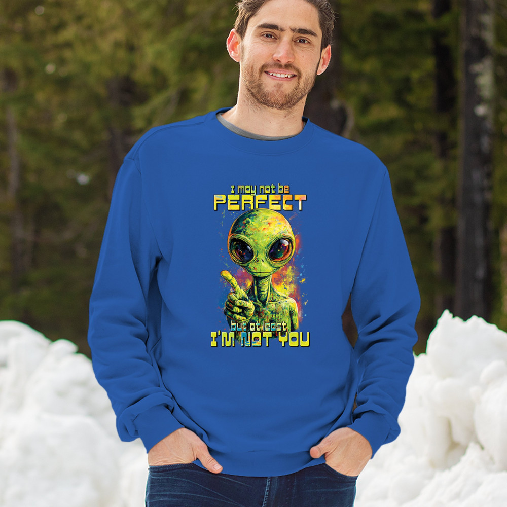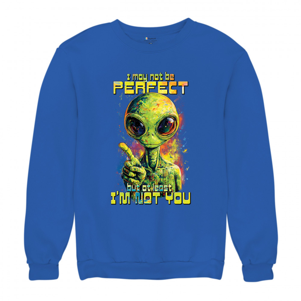 This smug alien design delivers sharp sarcastic humor with vibrant cosmic flair. Featuring a big-eyed extraterrestrial and the quote “I may not be perfect, but at least I’m not you,†it’s perfect for sci-fi fans, alien lovers, jokesters, and oddballs alike. A bold, funny statement for parties, UFO events, and festivals.