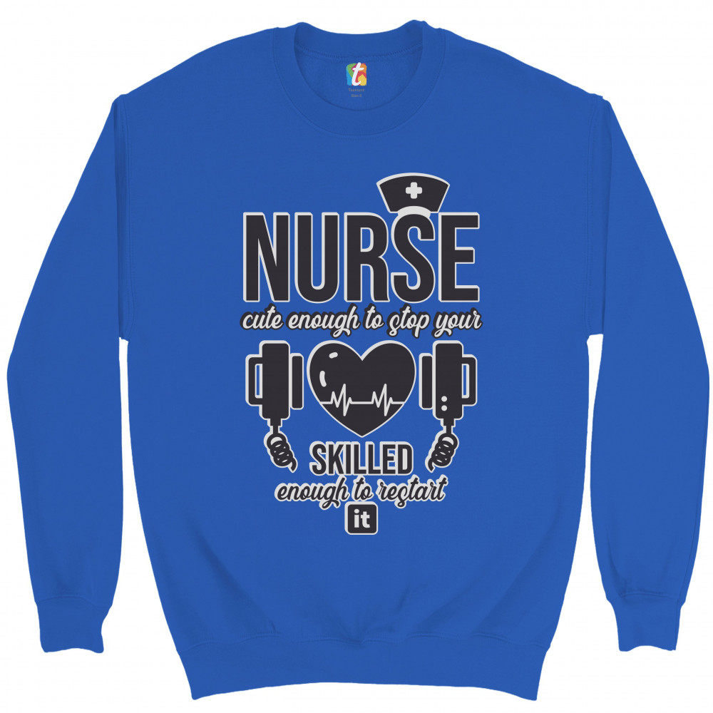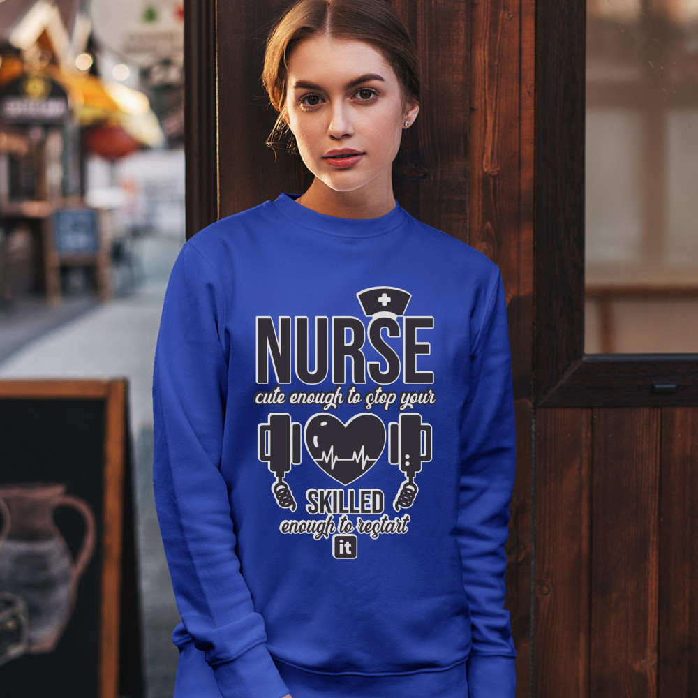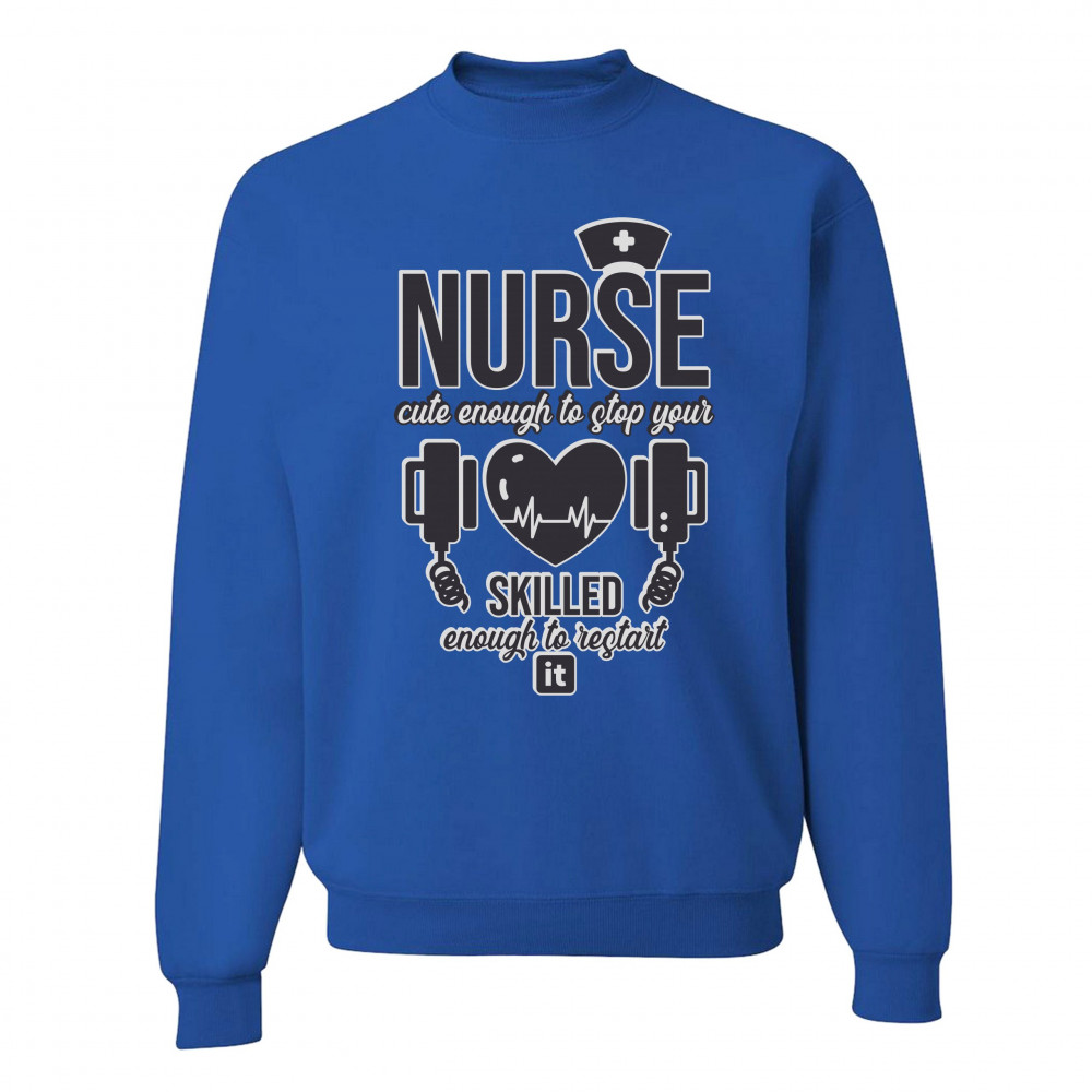 NURSE CUTE ENOUGH TO STOP YOUR HEART sweatshirt ems cpr first aid crewneck royal blue
