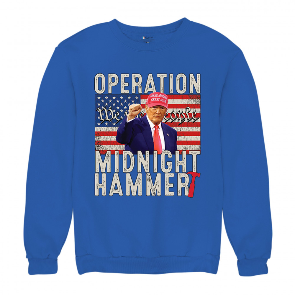 OPERATION MIDNIGHT HAMMER crewneck sweatshirt america first flag 47 president royal blue