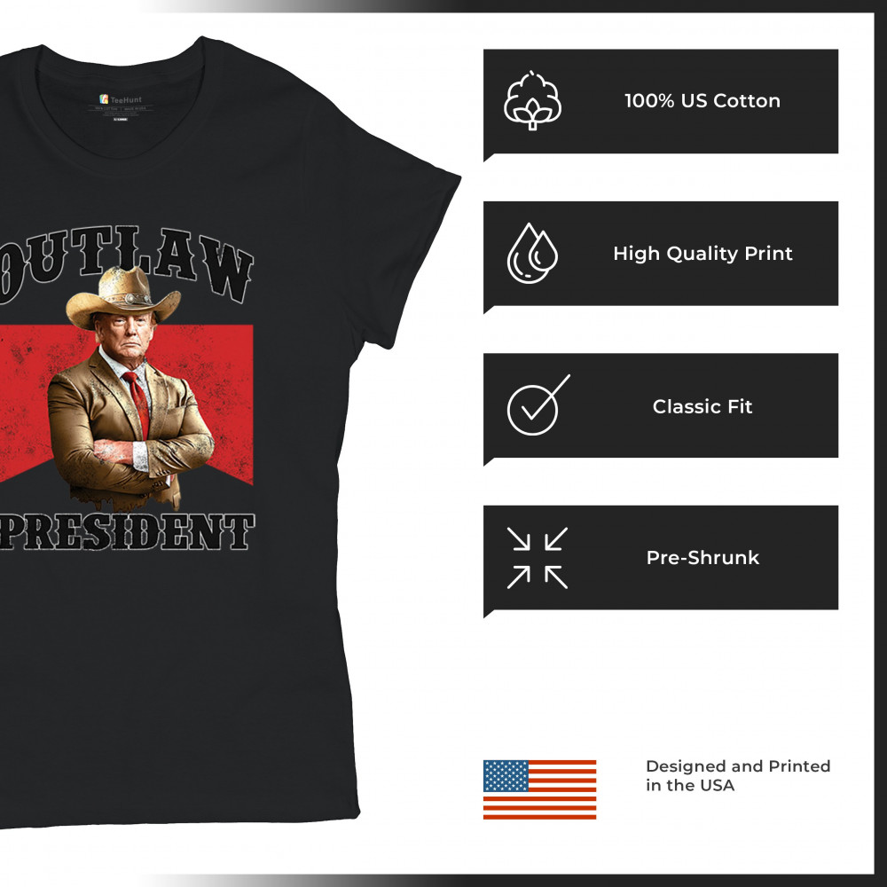 Celebrate America First with the "Outlaw President" design! Support Donald J. Trump, the Red Wave, and conservative values in bold style.