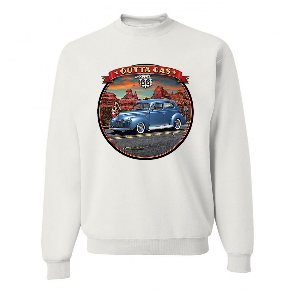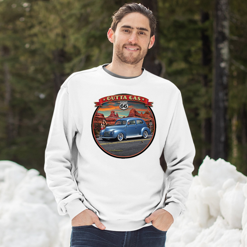 OUTTA GAS ON ROUTE 66 sweatshirt the mother road retro vintage crewneck white