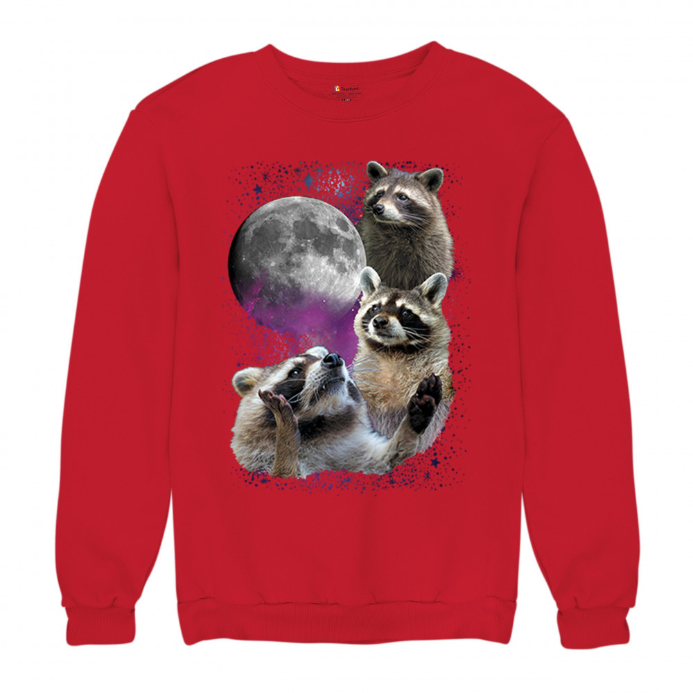 Embrace nature with this quirky raccoon and moon design, perfect for space and animal lovers. Ideal for casual wear or gifts.