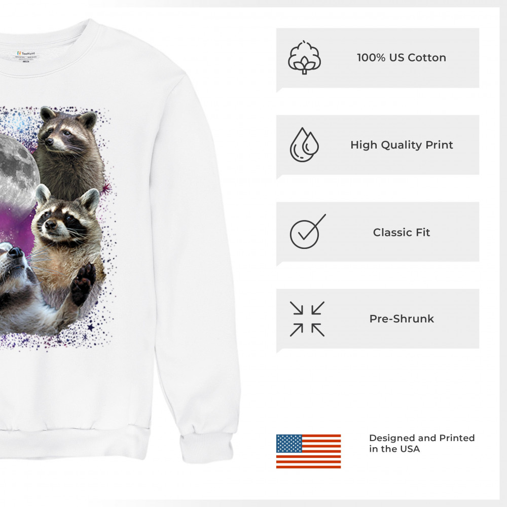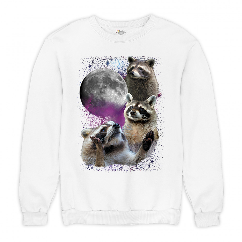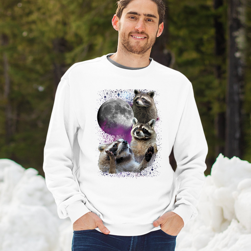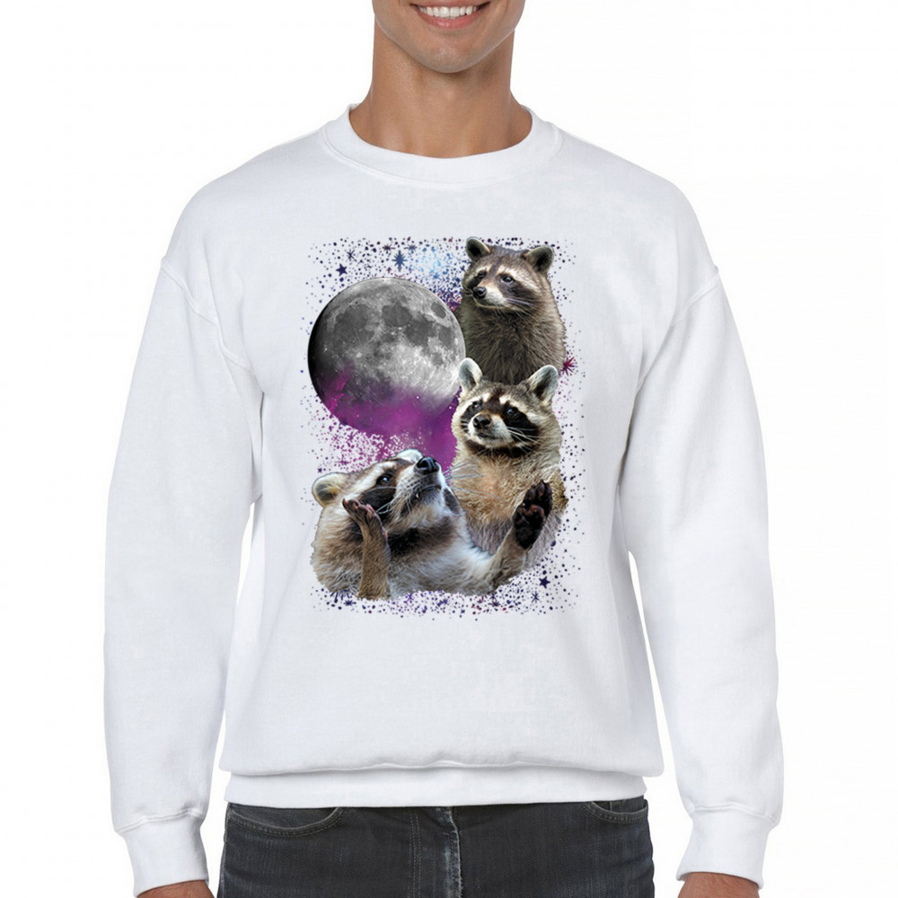 Embrace nature with this quirky raccoon and moon design, perfect for space and animal lovers. Ideal for casual wear or gifts.