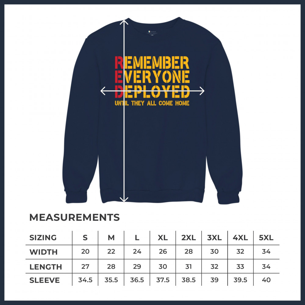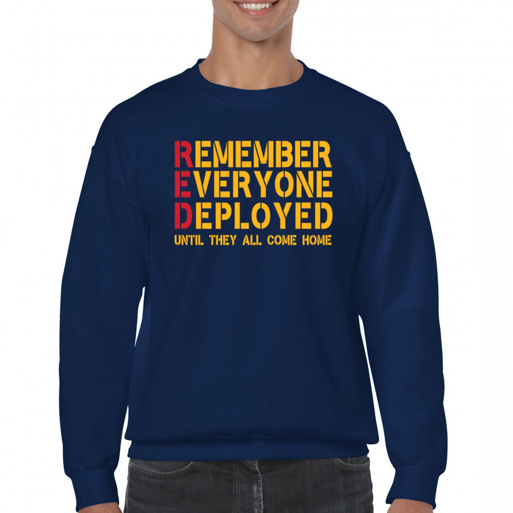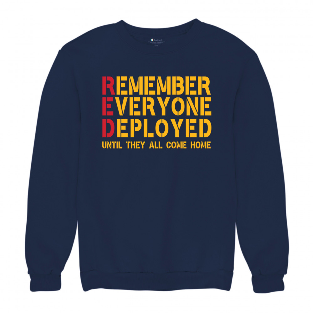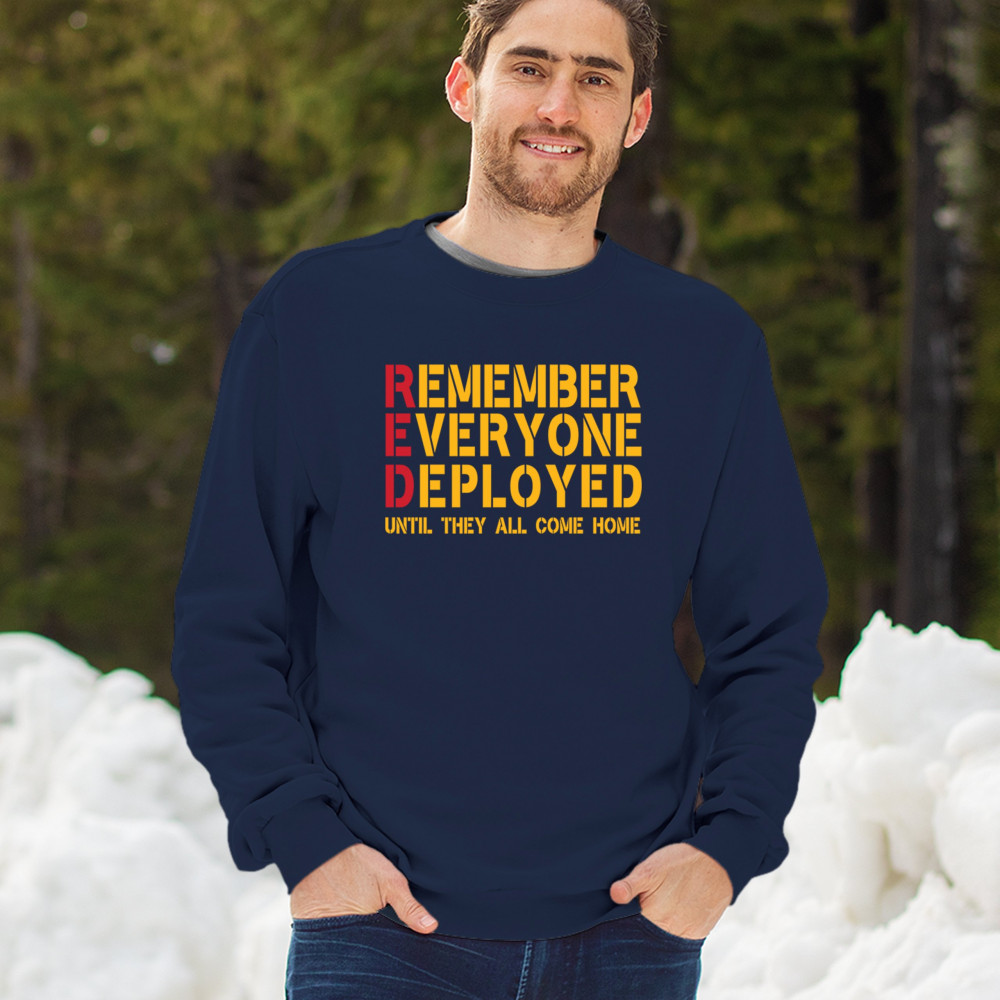 Show your support for our deployed troops with this "Remember Everyone Deployed" shirt. The bold and striking design is perfect for expressing your patriotic pride and honoring those who serve. Made from soft and durable materials, this shirt is ideal for everyday wear or special occasions like Veterans Day, Memorial Day, and the Fourth of July. Whether you're participating in a community event, attending a parade, or just want to show your appreciation, this shirt is a great choice. It also makes a thoughtful gift for anyone who supports our military heroes.