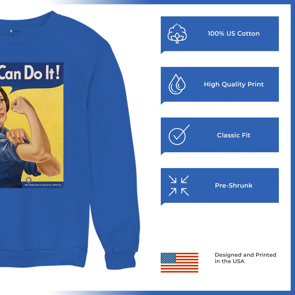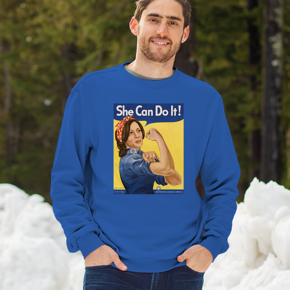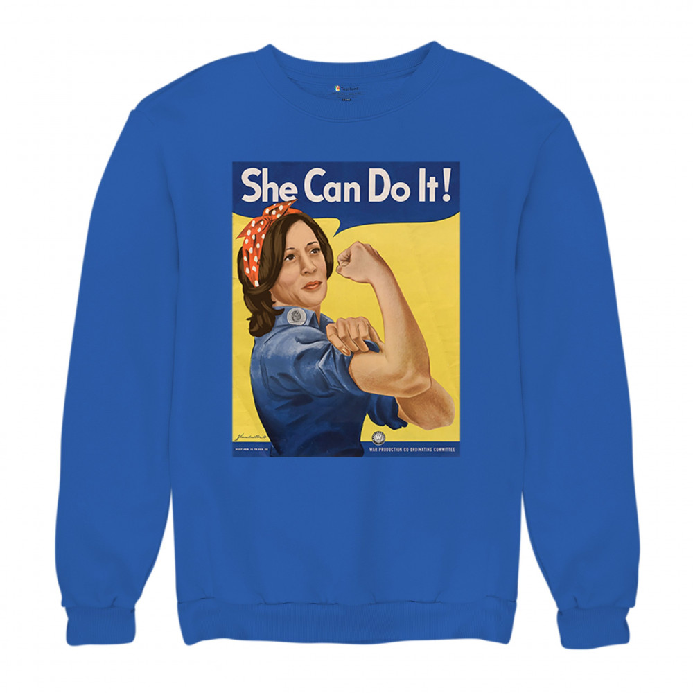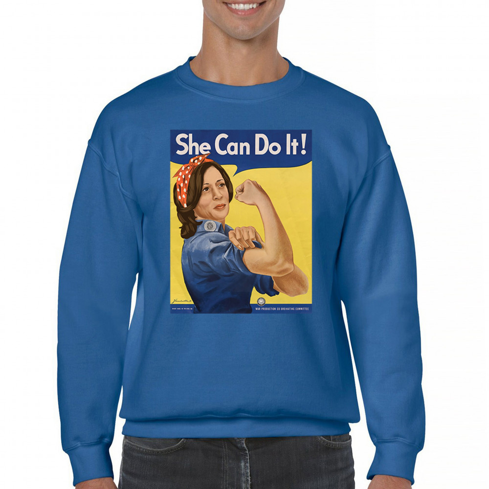 Show your support for Kamala Harris in 2024 with this empowering "She Can Do It!" design. Inspired by Rosie the Riveter, it symbolizes strength, equality, and progress.
