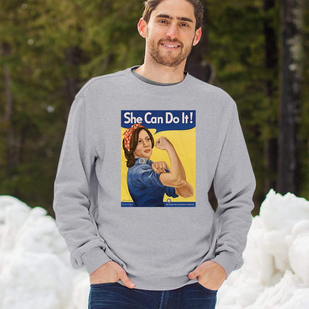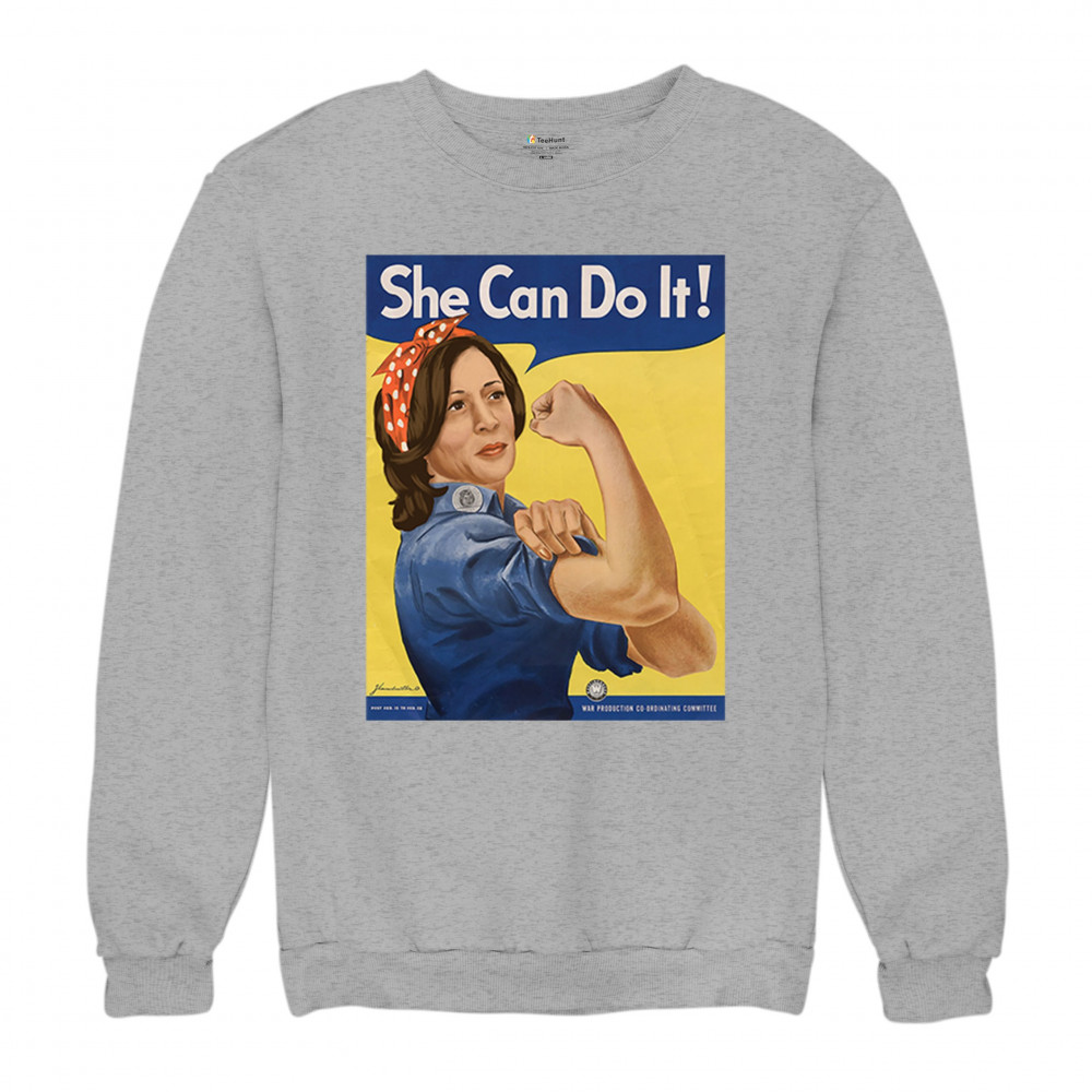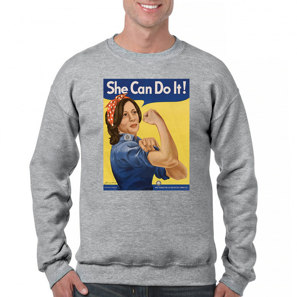 SHE CAN DO IT! KAMALA HARRIS 2024 sweatshirt president 47 i'm speaking crewneck gray