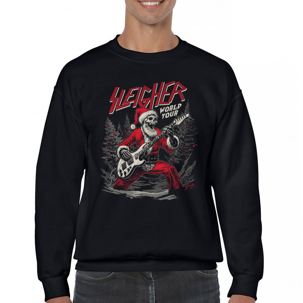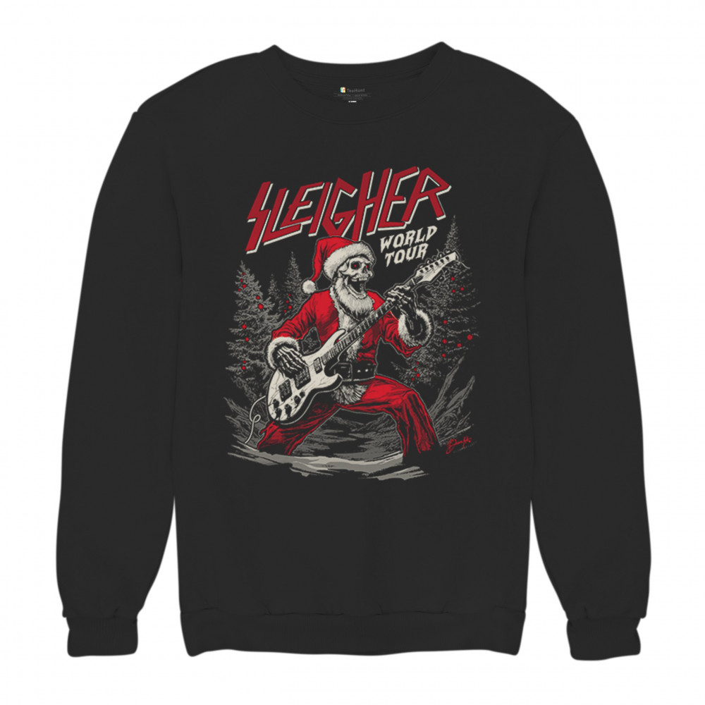 Bring the perfect mix of holiday cheer and rock ‘n’ roll to your wardrobe with the "Sleigher World Tour" design! Featuring a Santa skeleton rocking an electric guitar, this unique and edgy artwork is ideal for music lovers, ugly sweater contests, and festive gatherings. Celebrate Christmas with a rebellious twist and make every holiday event unforgettable!