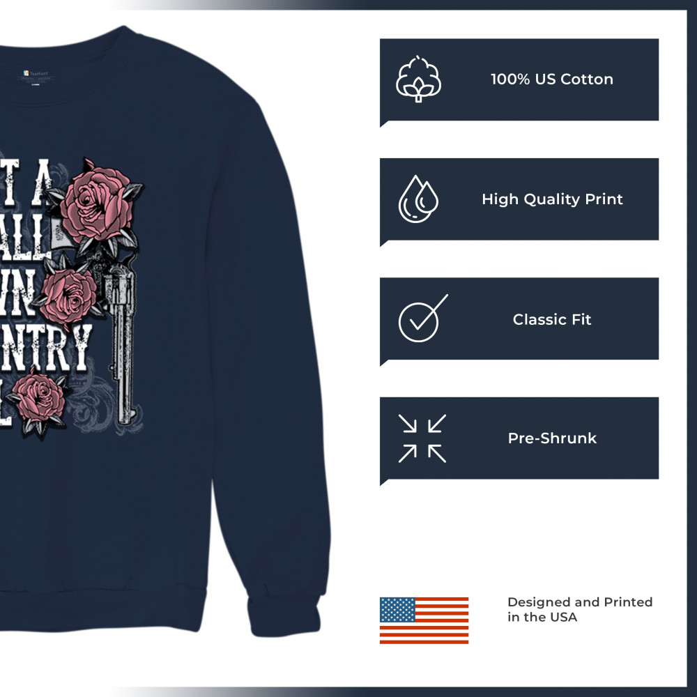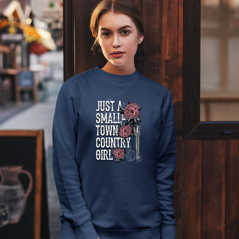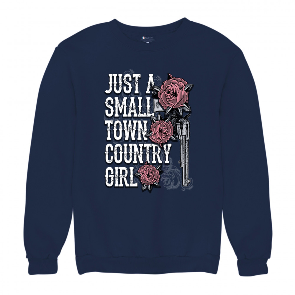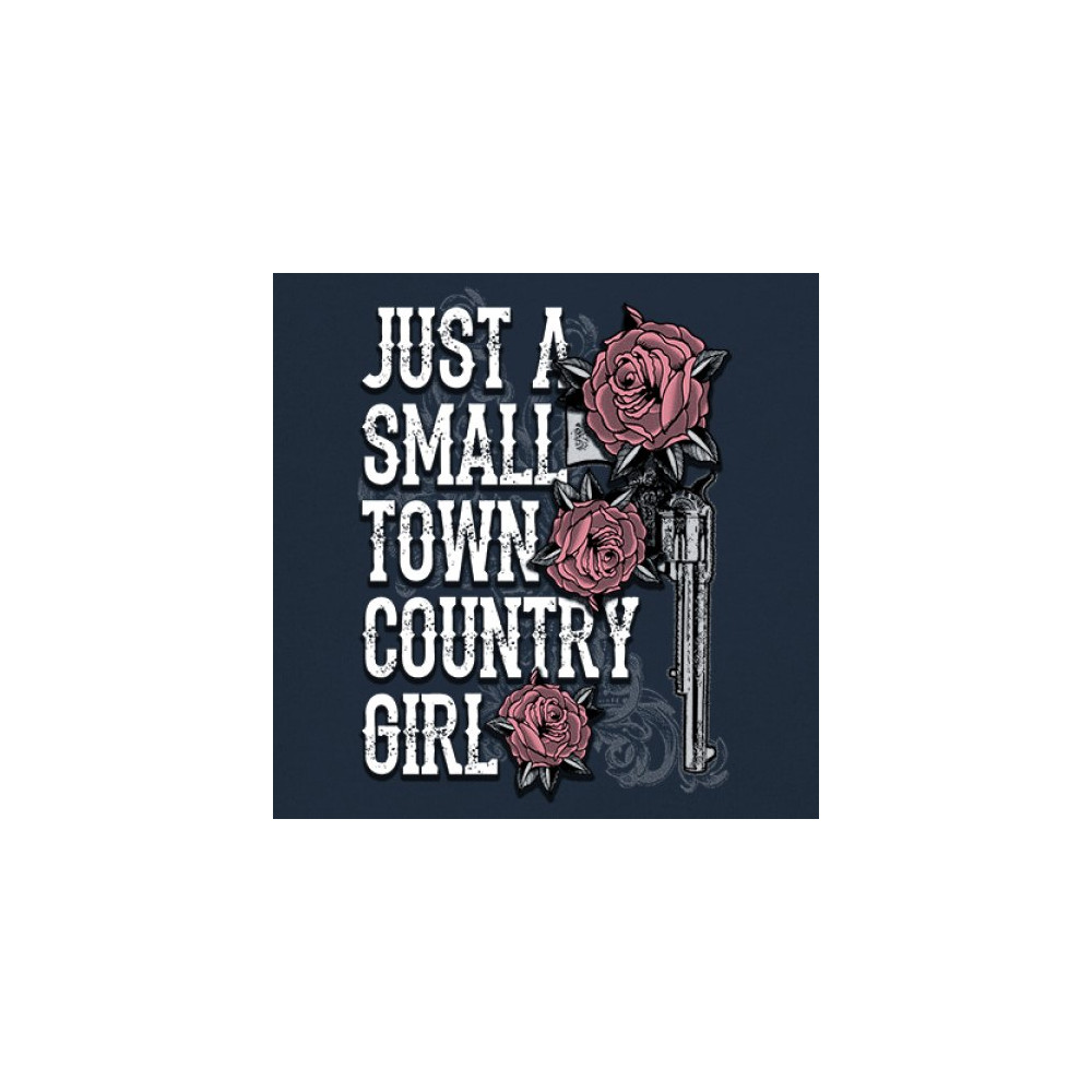 Rustic small town country girl design with rose and revolver art. Great for cowgirls, rodeos, fairs, and southern pride style.