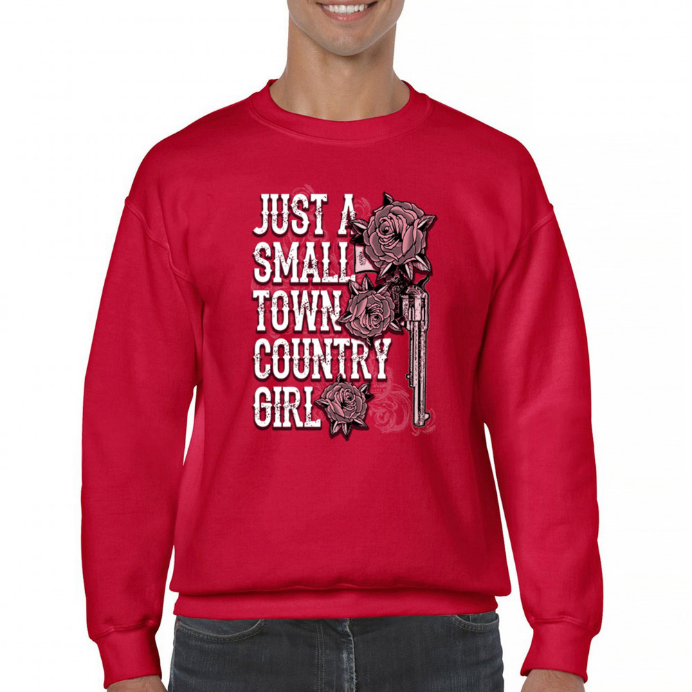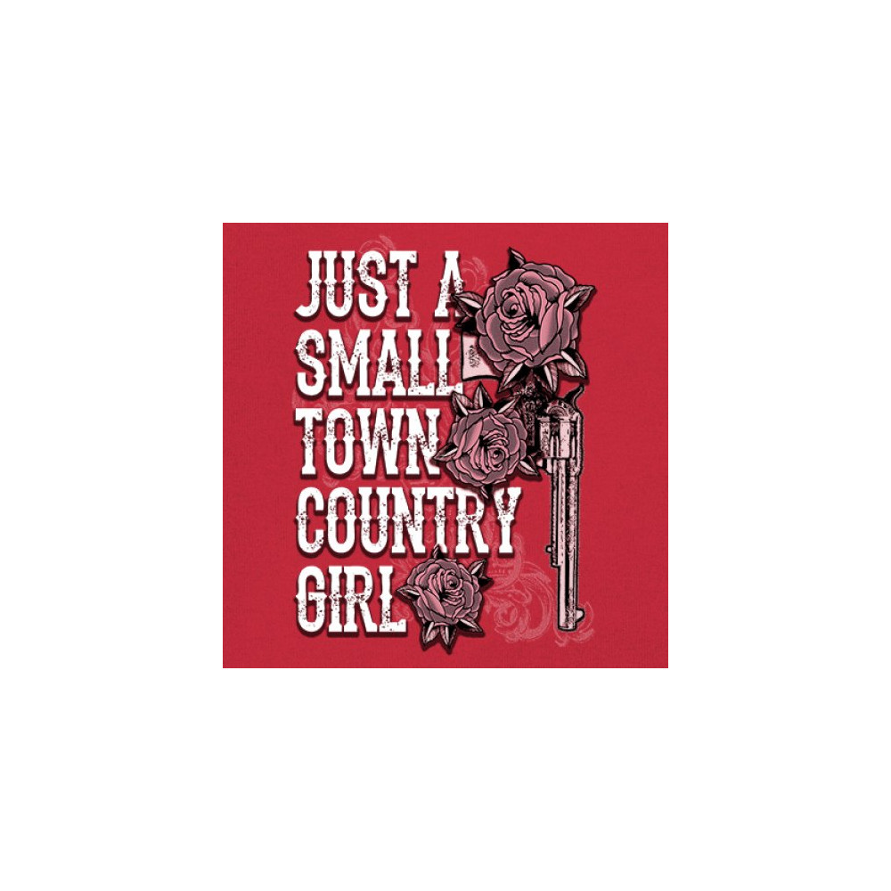 Rustic small town country girl design with rose and revolver art. Great for cowgirls, rodeos, fairs, and southern pride style.