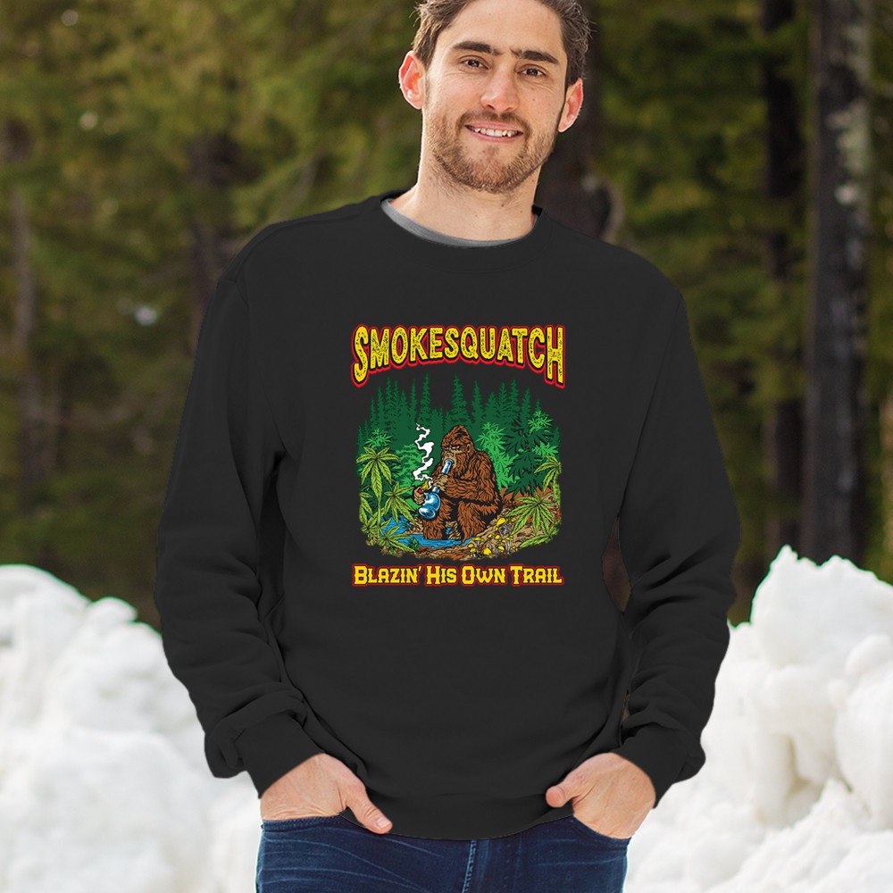 Funny Bigfoot stoner design for cannabis lovers, cryptid fans, and 420 culture. Smokesquatch blazes through forest vibes and weed humor.
