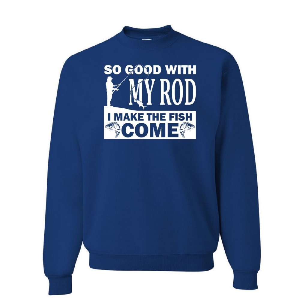 SO GOOD WITH MY ROD I MAKE FISH COME sweatshirt fly fishing hobby sweater blue