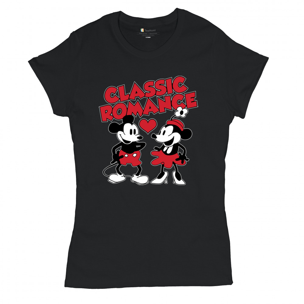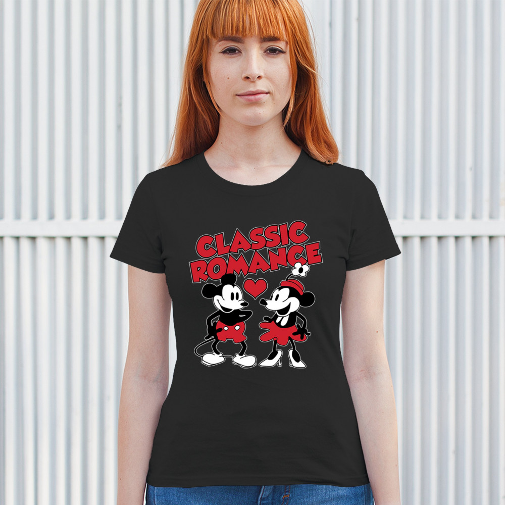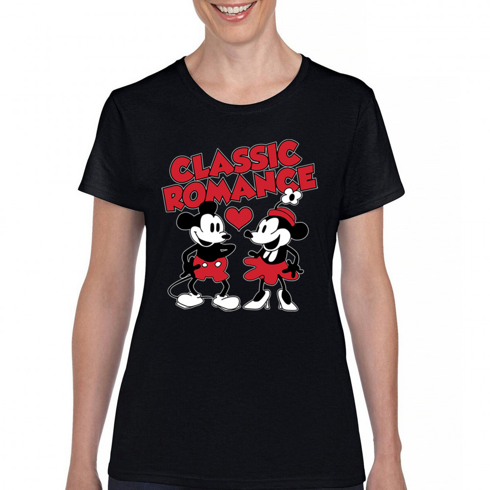 STEAMBOAT WILLIE CLASSIC ROMANCE t-shirt cute cartoon mouse retro women's tee black