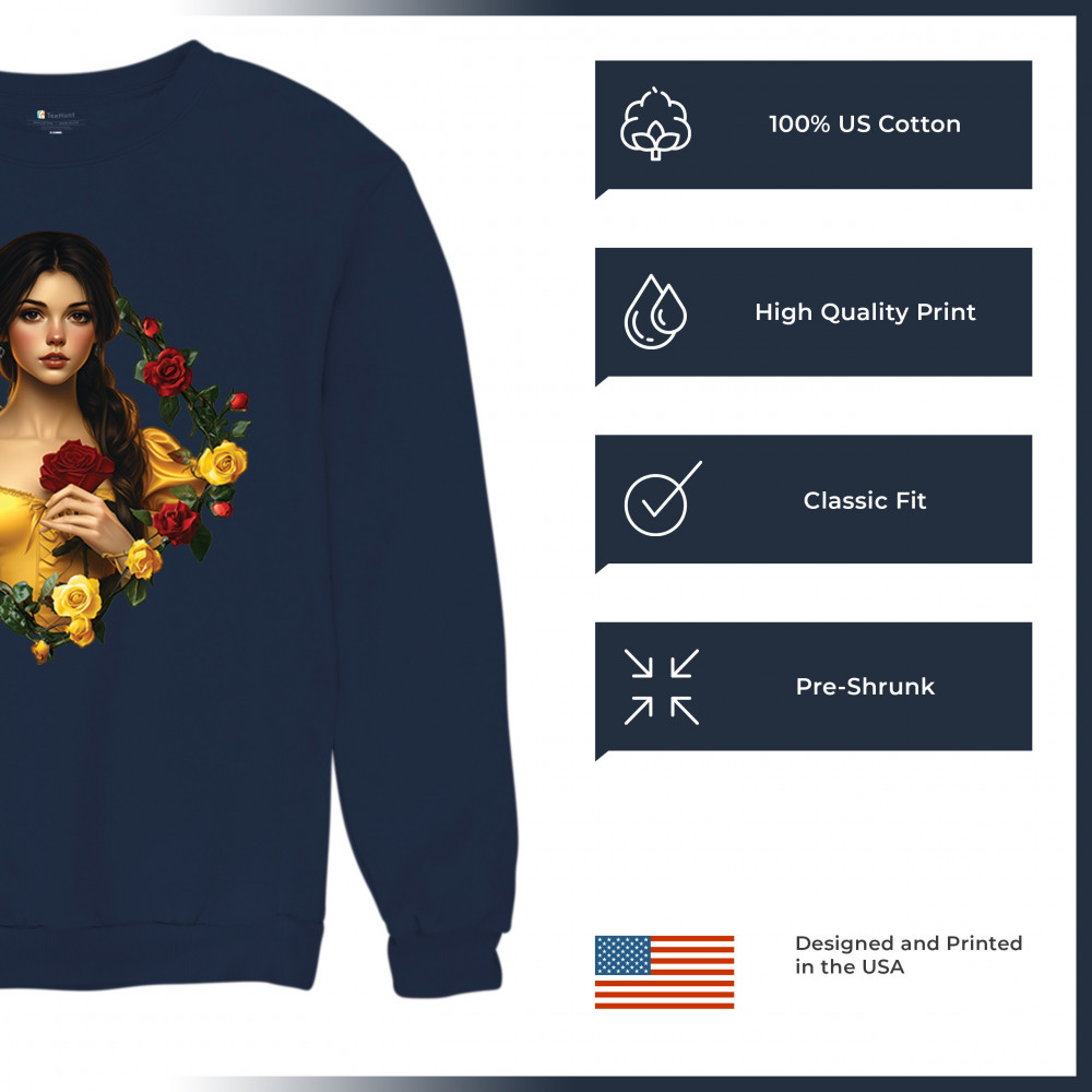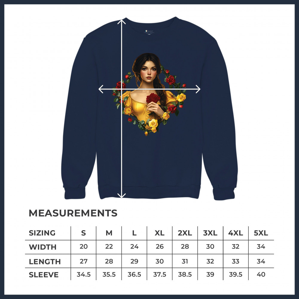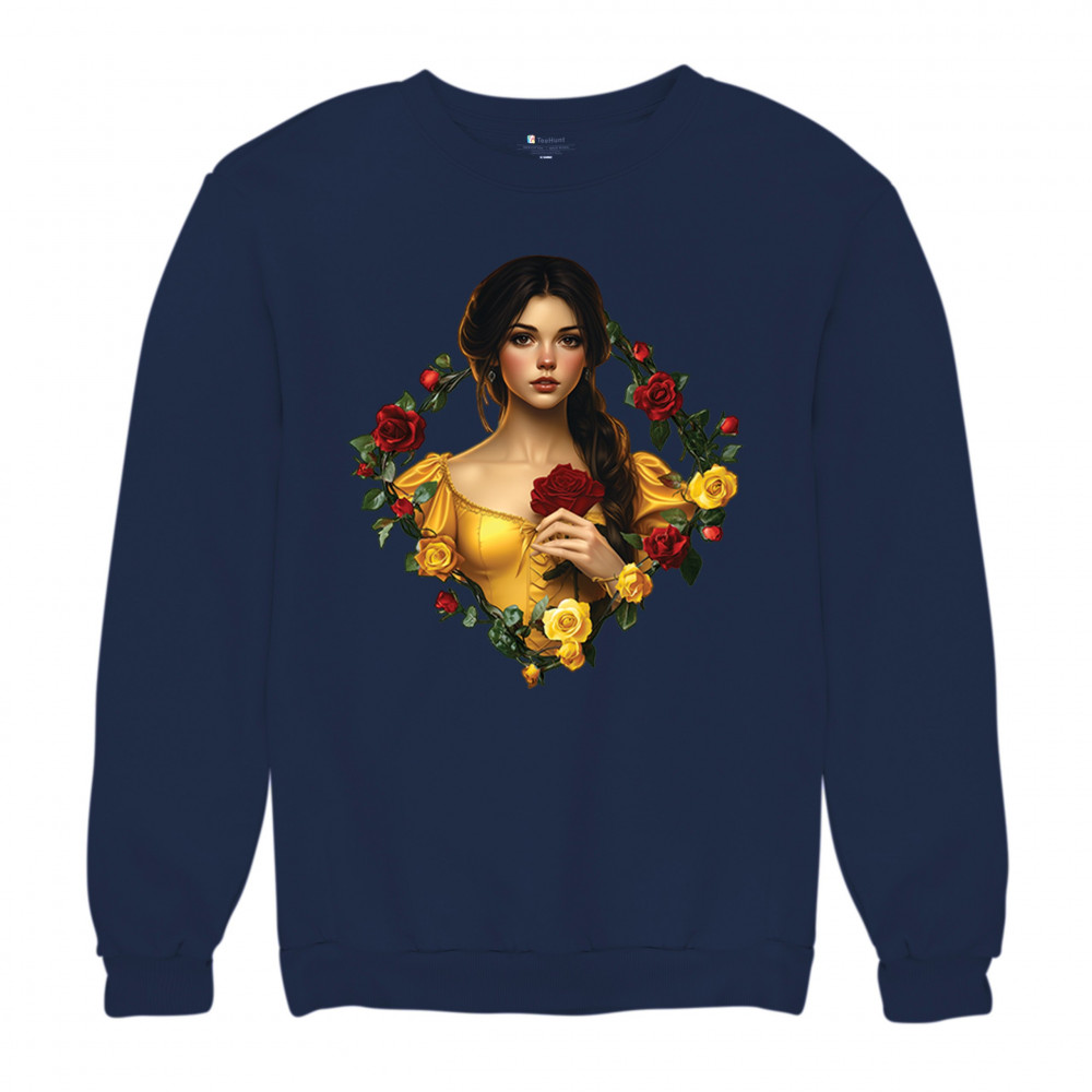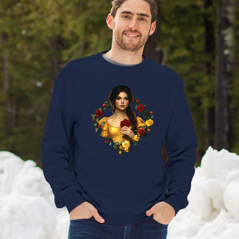 Inspired by classic fairytales, this design features a girl in a yellow gown holding a red rose, framed by rich red and yellow roses. A tribute to Beauty and the Beast, it radiates warmth, romance, and timeless fantasy. Perfect for storybook lovers, enchanted art collectors, or those drawn to magical, symbolic imagery filled with beauty and grace.