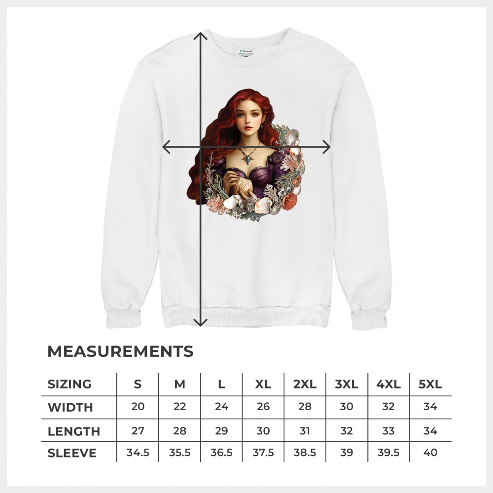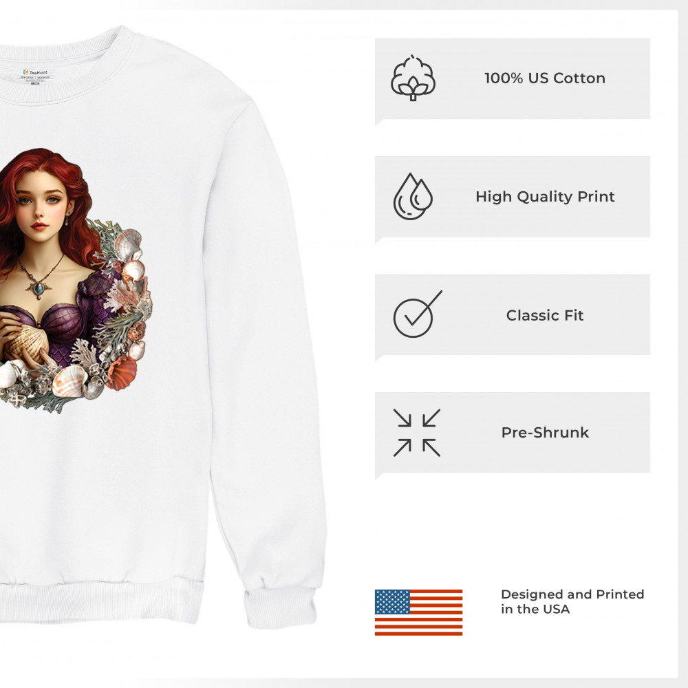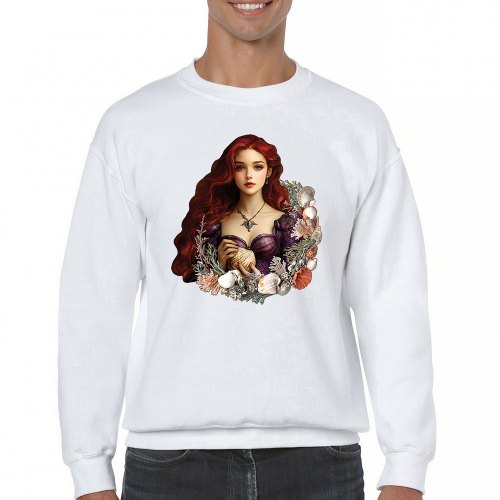 STORYBOOK MERMAID sweatshirt seashell princess fantasy ocean fairytale crewneck white
