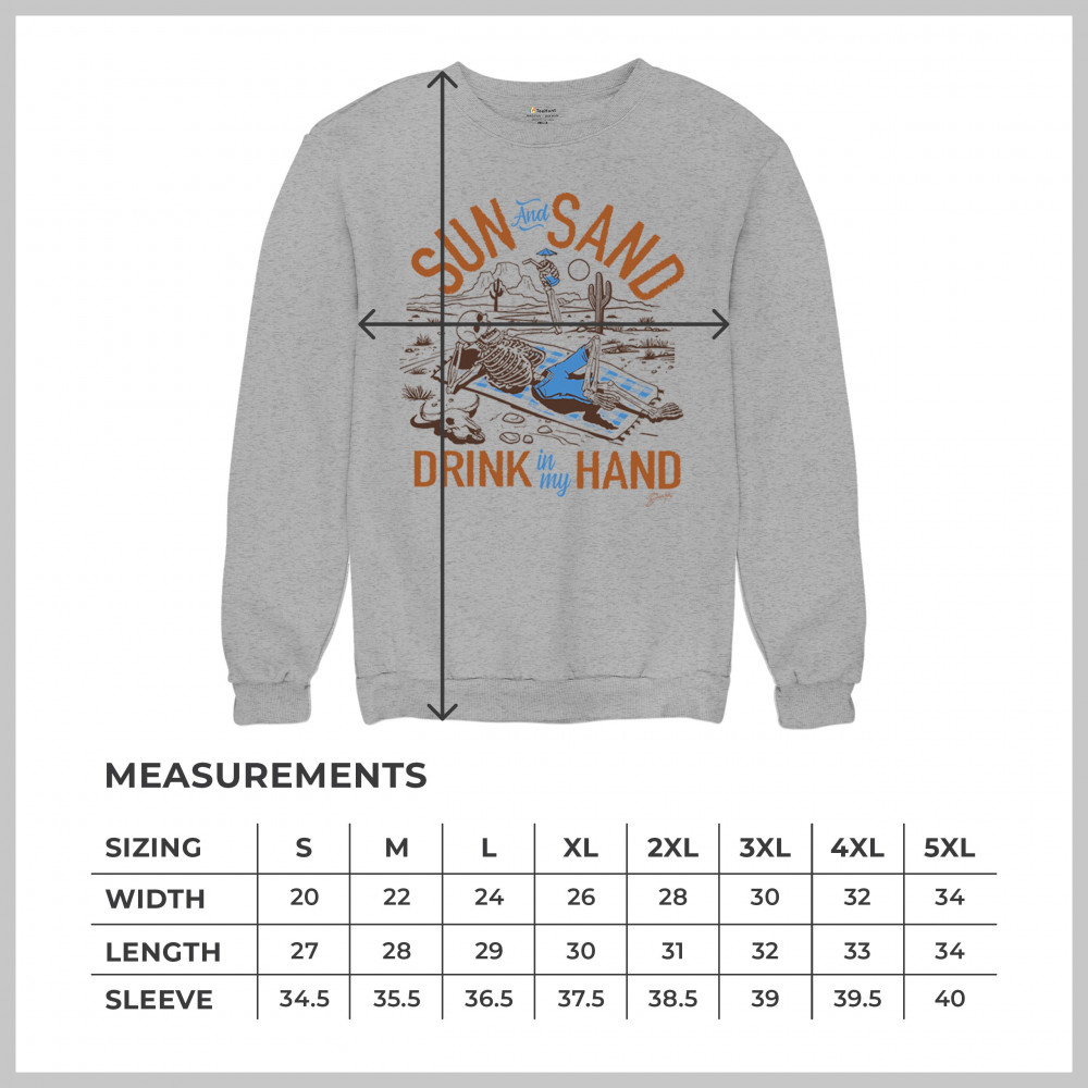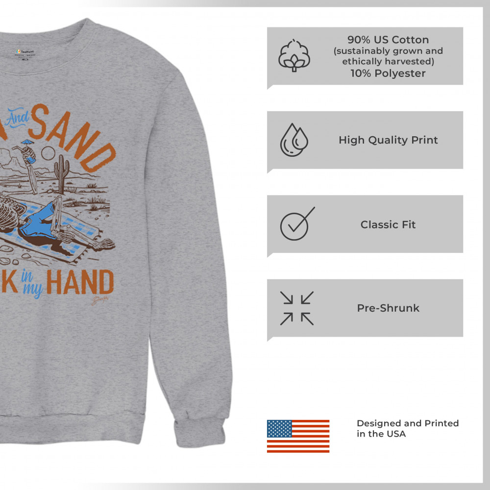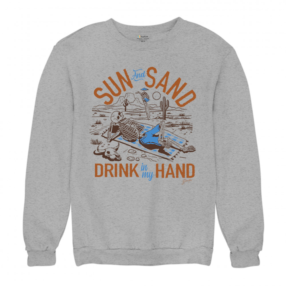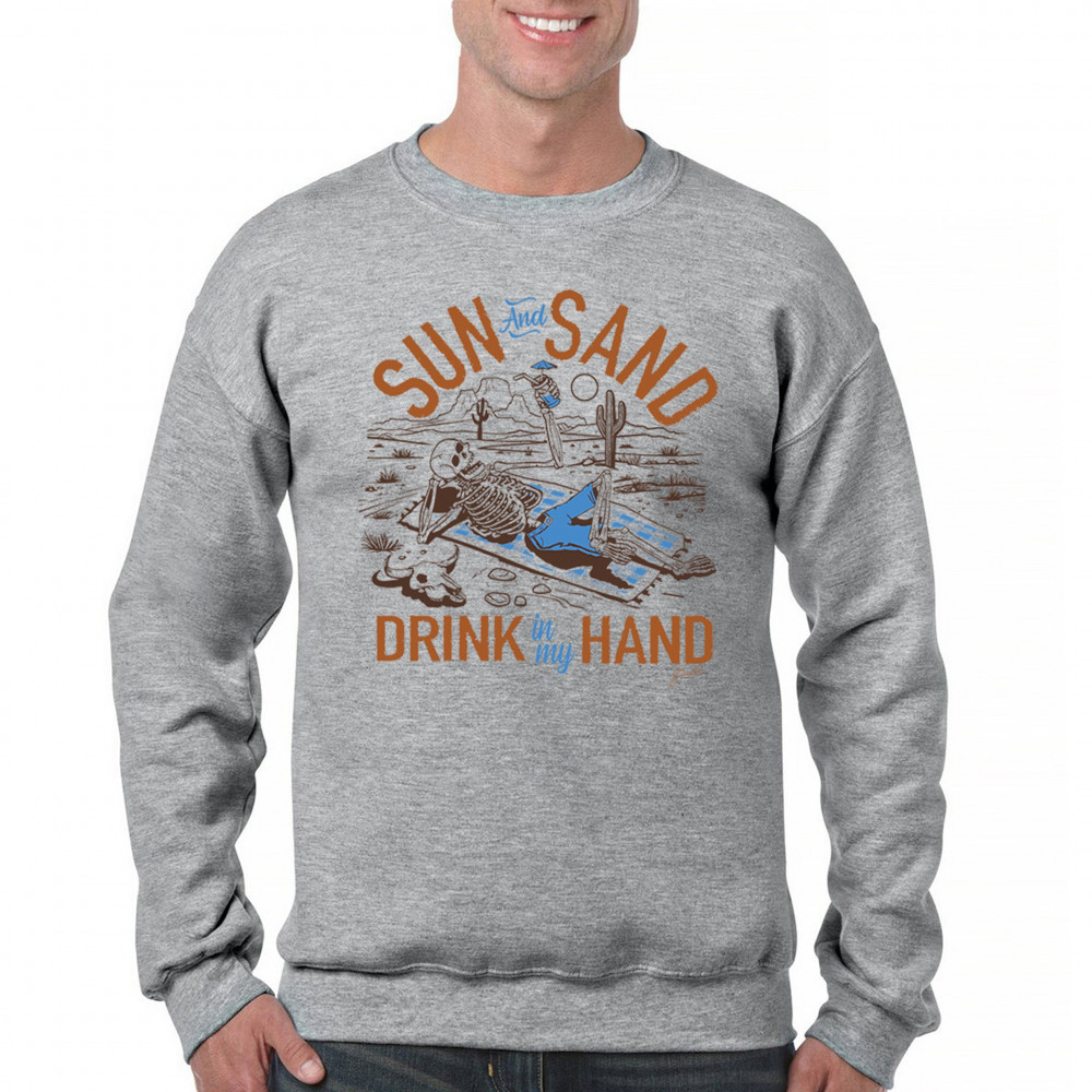 SUN AND SAND DRINK IN MY HAND sweatshirt funny dry heat desert beach crewneck gray