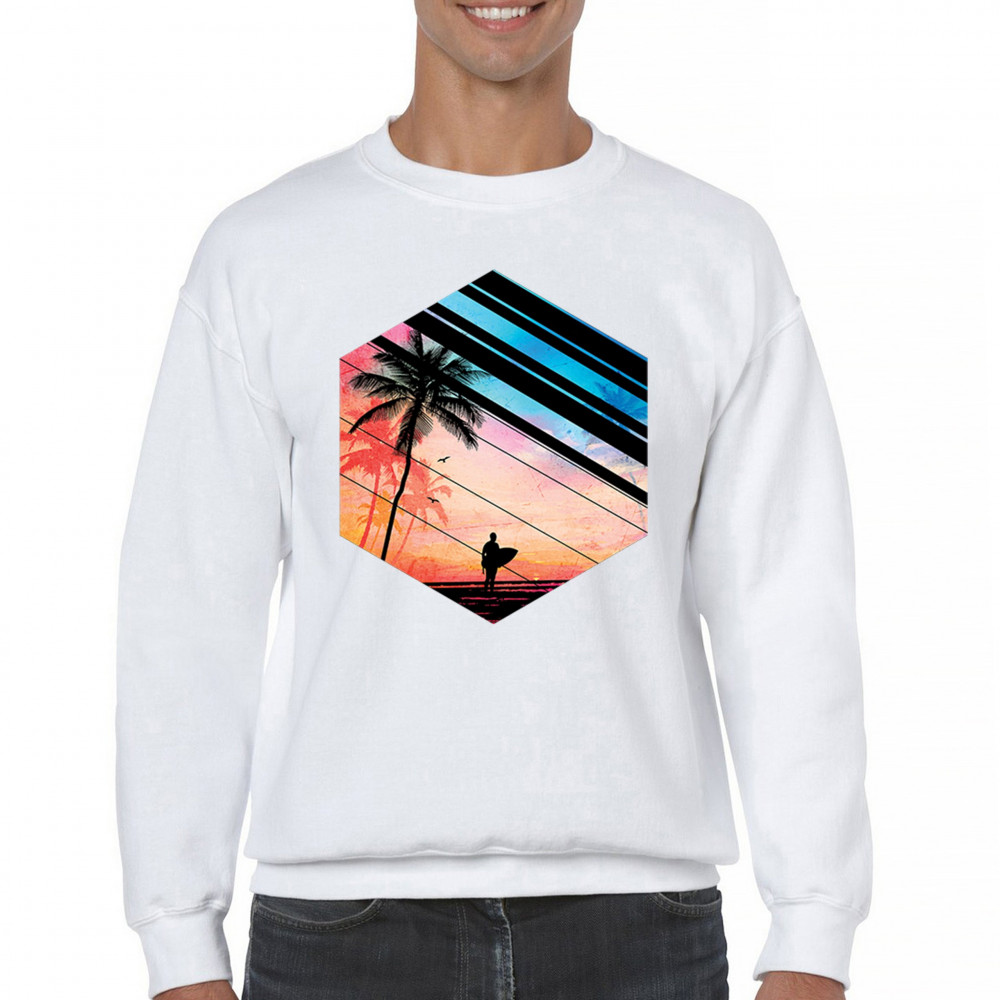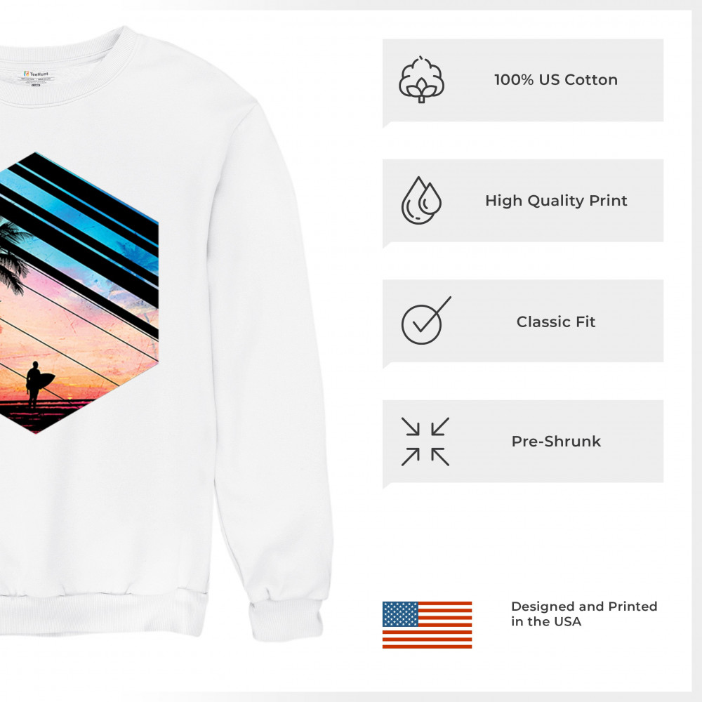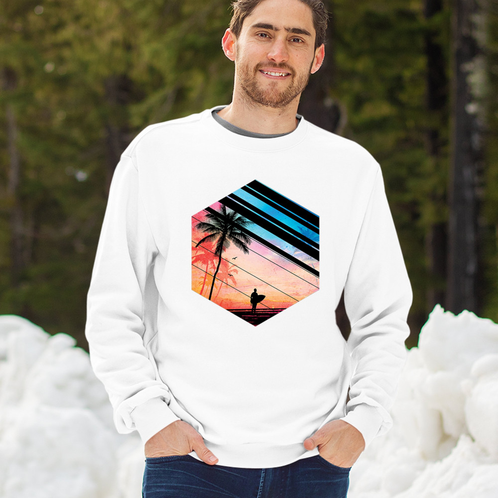 Catch the vibe of endless summer with our surf-inspired tee. Featuring silhouetted palms, warm gradients, and cool geometric shapes, it’s a visual journey from the urban grind to tropical tranquility. This tee is for the soul surfers and dreamers, made to be as enduring as the memories of your last wave. It's more than apparel—it’s a horizon of possibilities. Add this staple to your collection and let the good times roll.