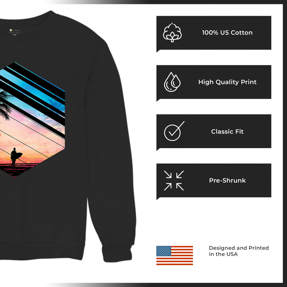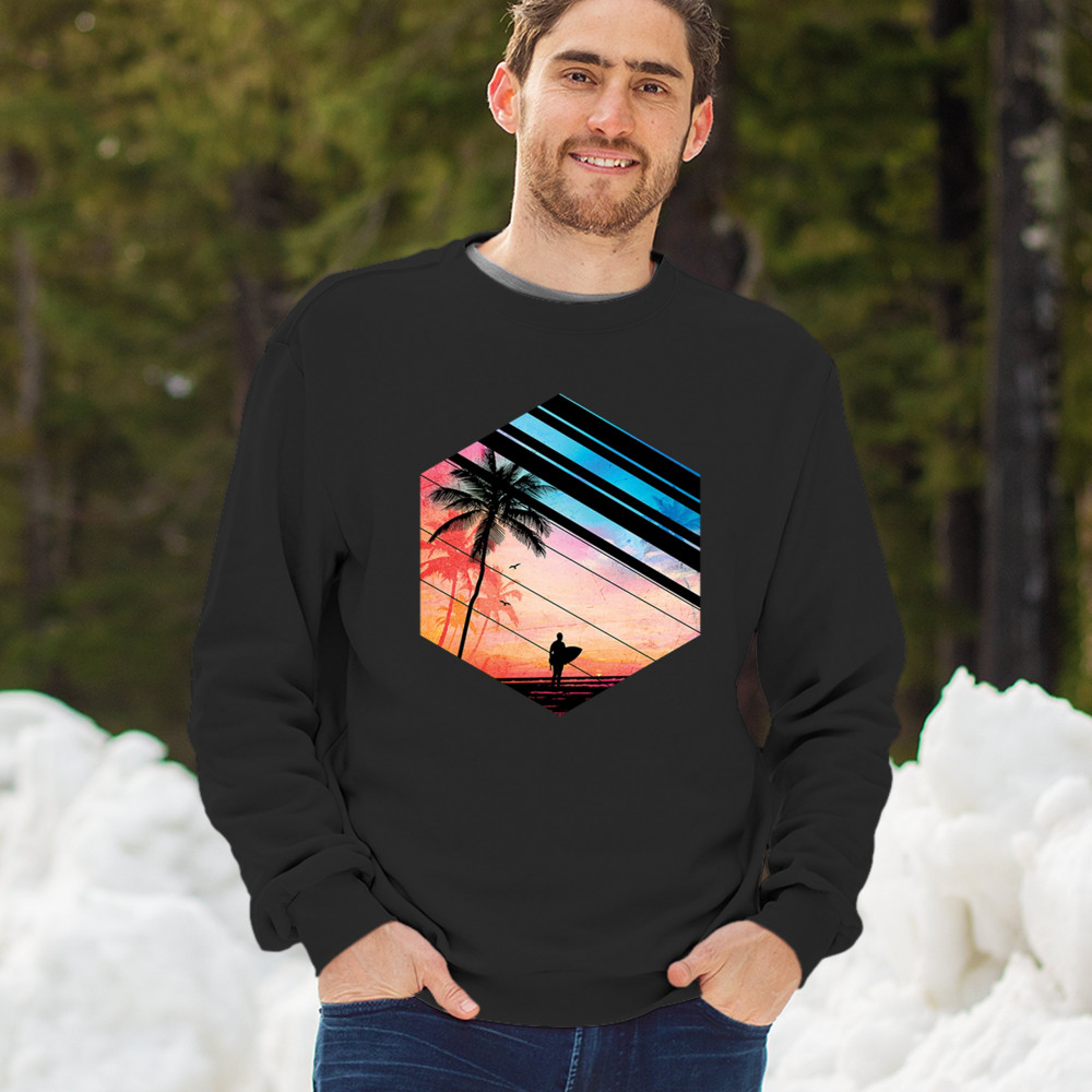 Catch the vibe of endless summer with our surf-inspired tee. Featuring silhouetted palms, warm gradients, and cool geometric shapes, it’s a visual journey from the urban grind to tropical tranquility. This tee is for the soul surfers and dreamers, made to be as enduring as the memories of your last wave. It's more than apparel—it’s a horizon of possibilities. Add this staple to your collection and let the good times roll.