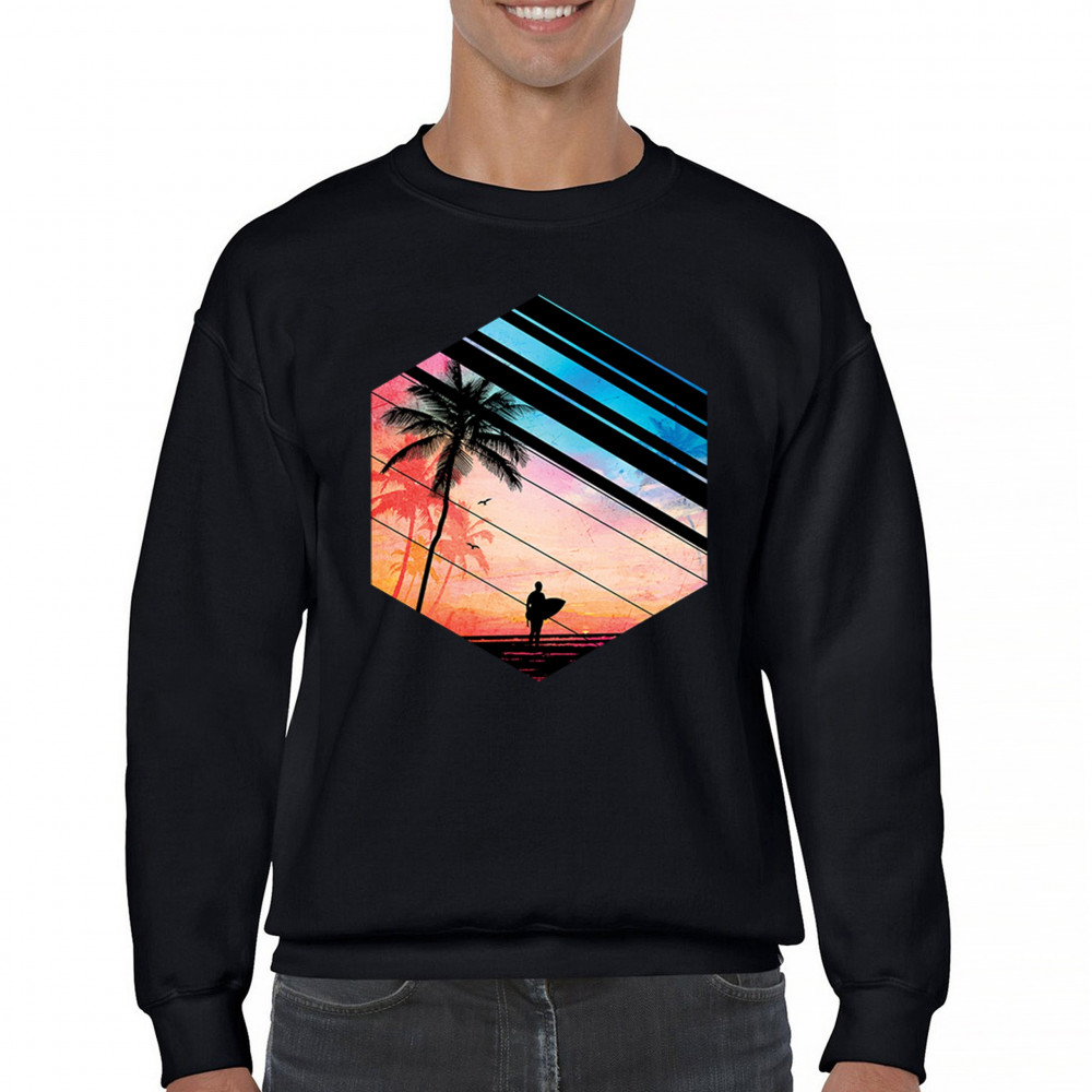 SURFER PARADISE sweatshirt vintage summer surfing wave beach surfboard crewneck black