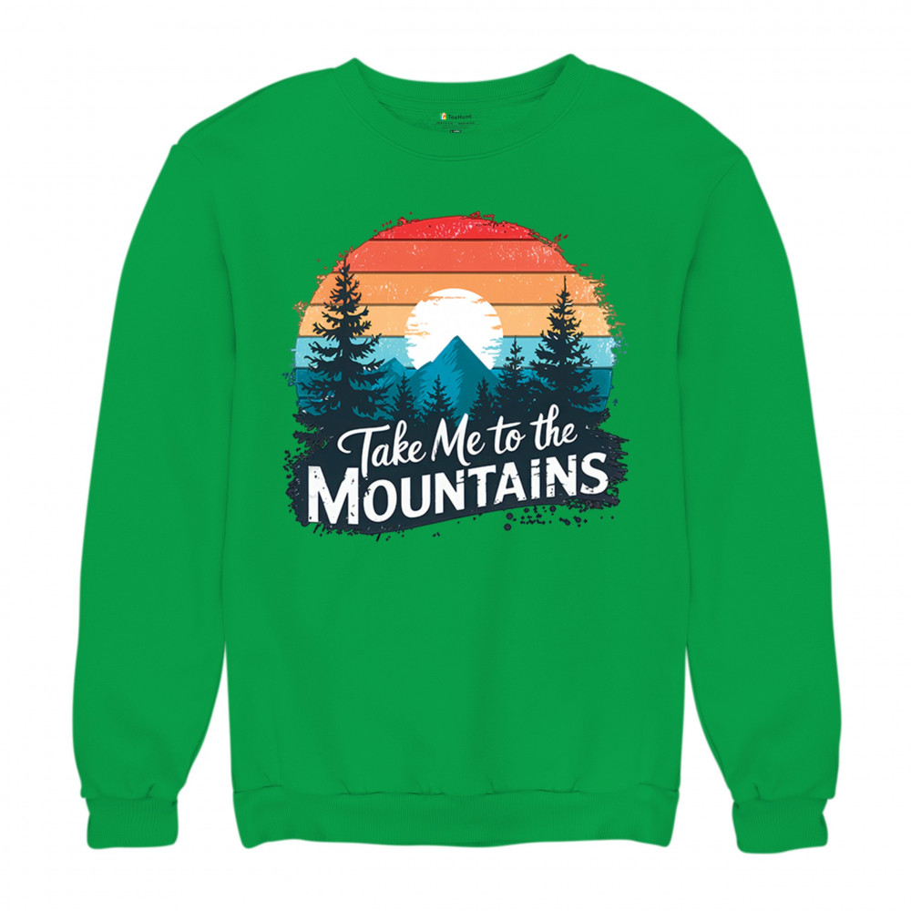 TAKE ME TO THE MOUNTAINS crewneck sweatshirt outdoors trail hiking camping green